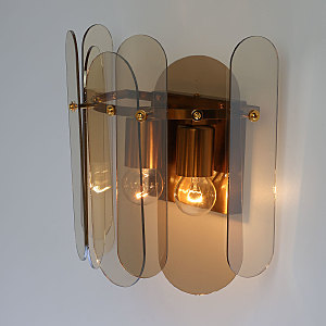 Металлическое основание настенного бра гальванизировано в цвет бронзы. Вертикальное бра декорировано стеклом овальной формы, гальванизированным в цвет топаз.