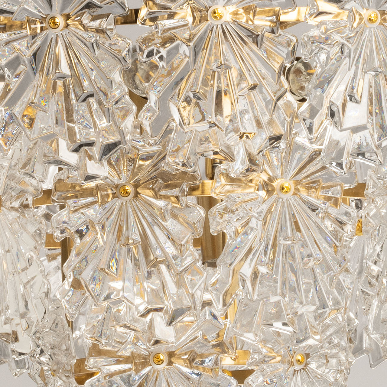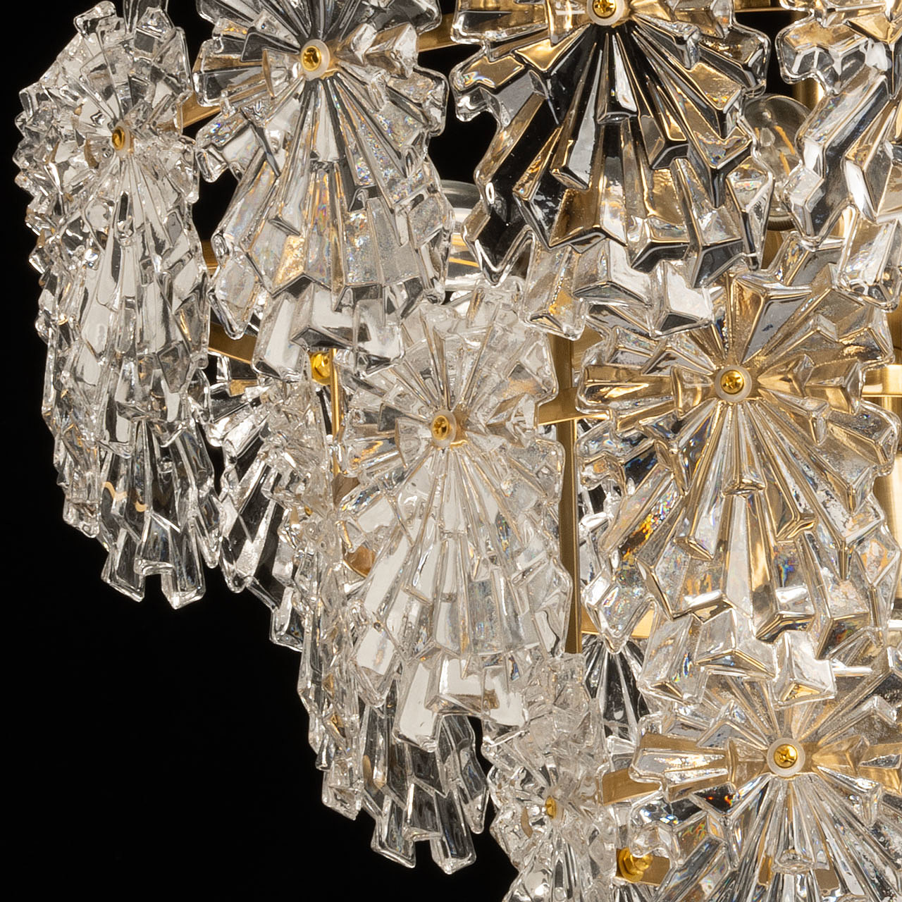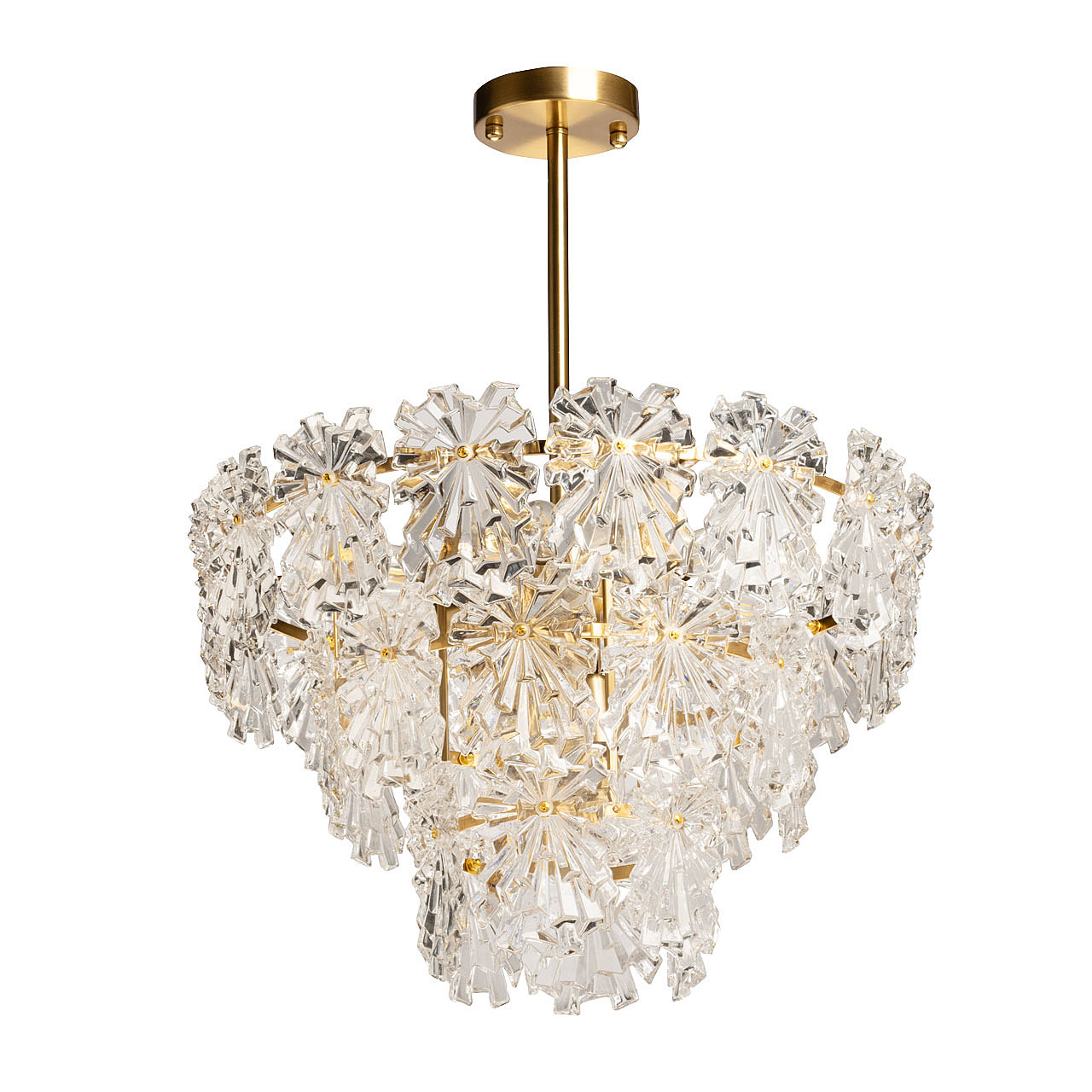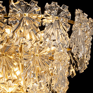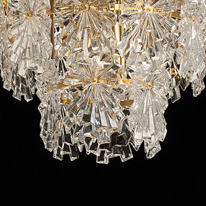 Оригинальный стеклянный декор красиво преломляет свет и придает люстре индивидуальность. Благодаря сочетанию гальванизированного металла, стекла и золотистых акцентов, люстра привнесет в интерьер неповторимый стиль и атмосферу уюта. Традиционные лампы замены удобны в эксплуатации.