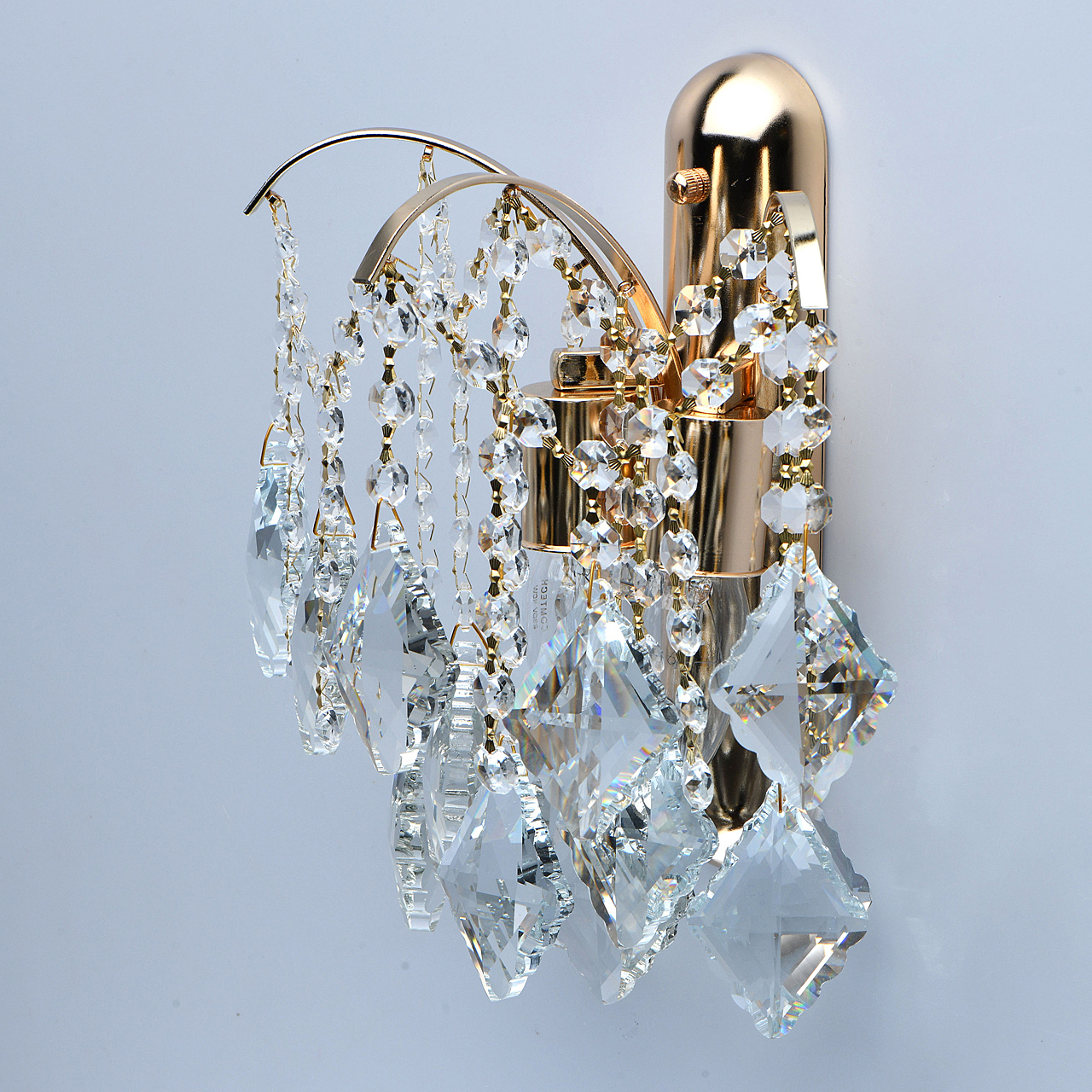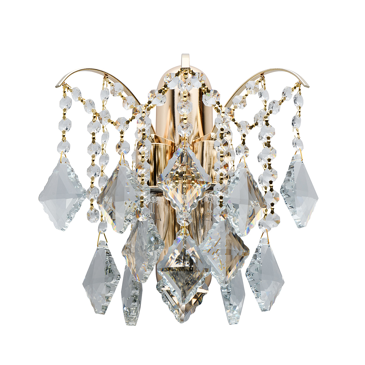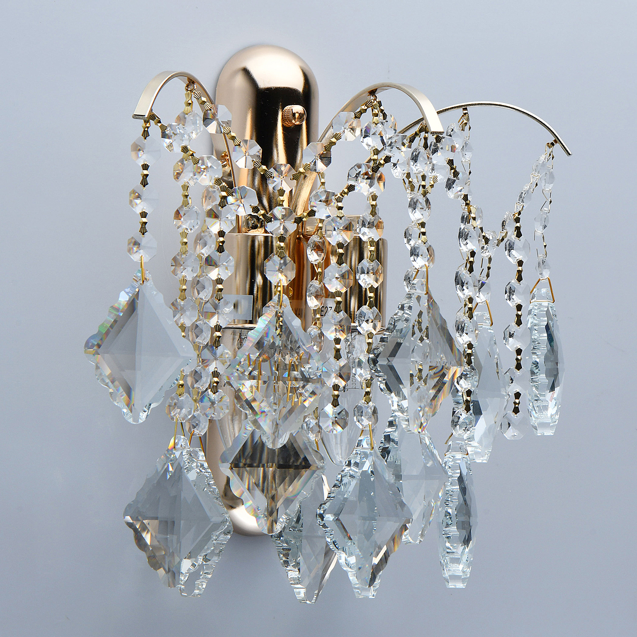 Хрустальный массивный декор в форме ромба, Подвески из прозрачного хрусталя и цепочки из октагонов создают красивую игру света.Классический золотой цвет основания всегда в тренде.Полная семья, состоящая из бра, светильника на 4 и 6 ламп