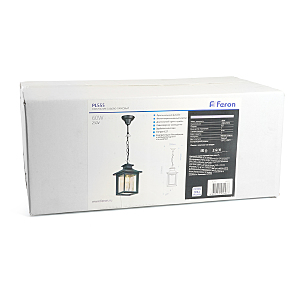 Светильник садово-парковый, серии "Брюссель", (НСУ) FERON PL555 60W, E27, 230V, IP44, цвет черный, 4-х гранник, на цепочке, 200*200*400мм