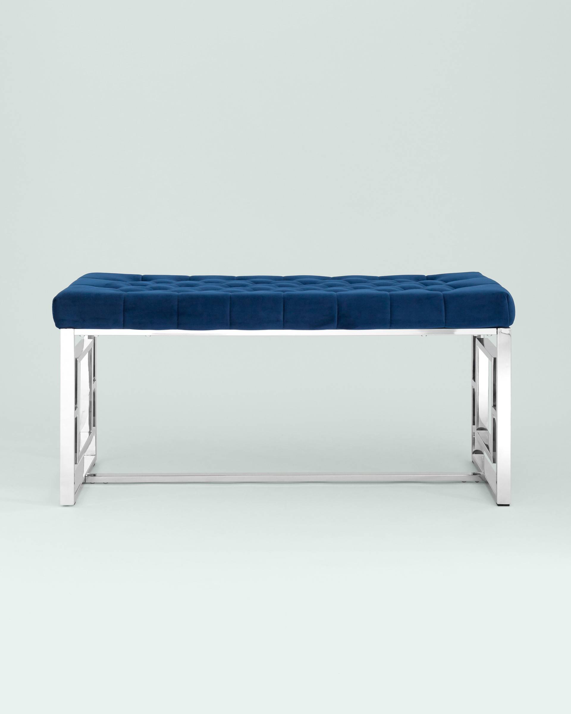 Банкетка-скамейка Stool Group БРУКЛИН сталь серебро, нержавеющая сталь, обивка сиденья синий велюр