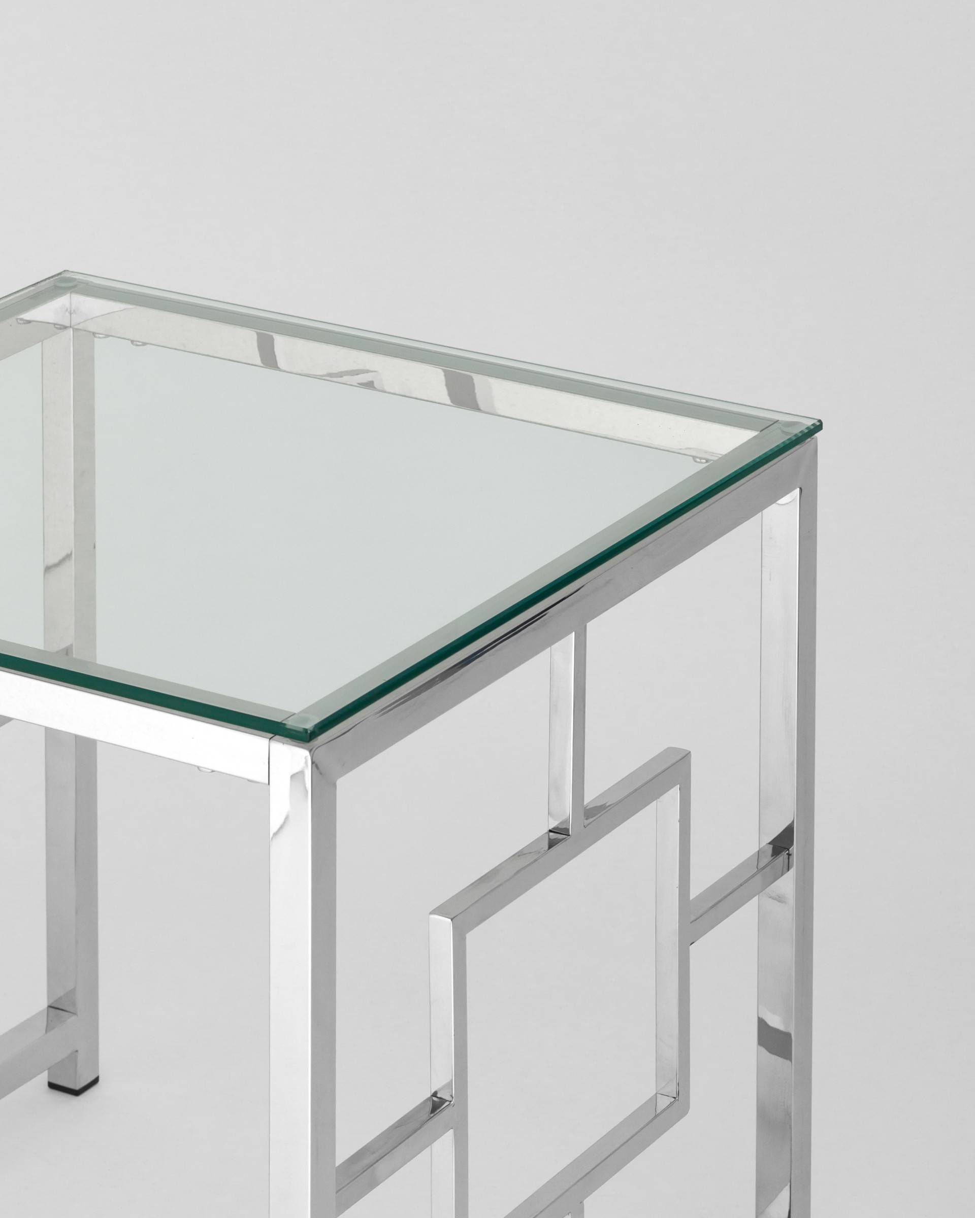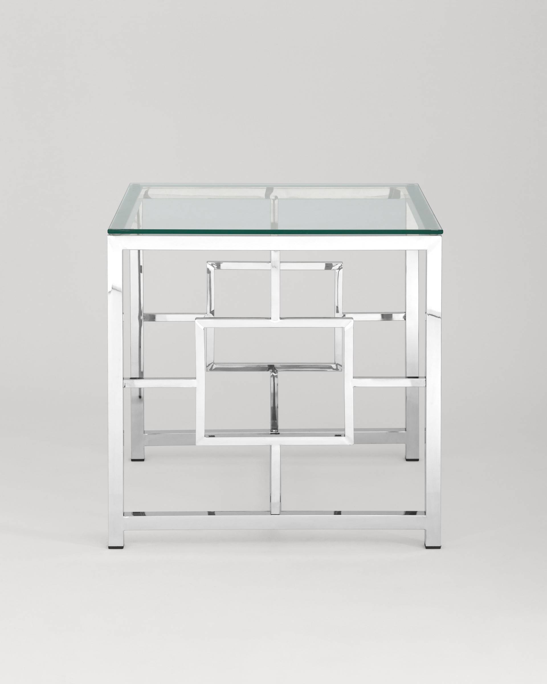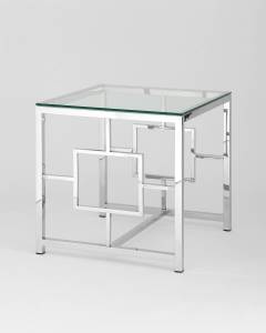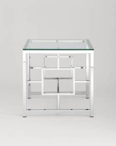 Стол Stool Group журнальный 55*55 БРУКЛИН серебро, каркас нержавеющая сталь, столешница закаленное стекло