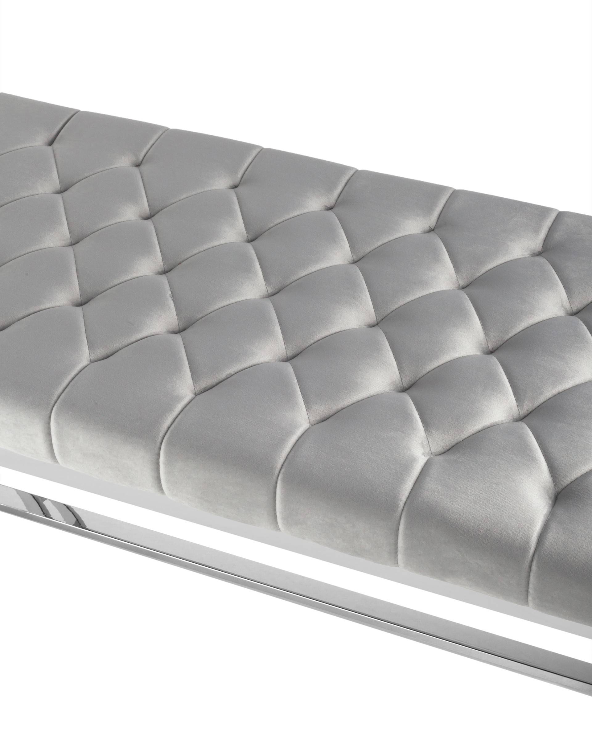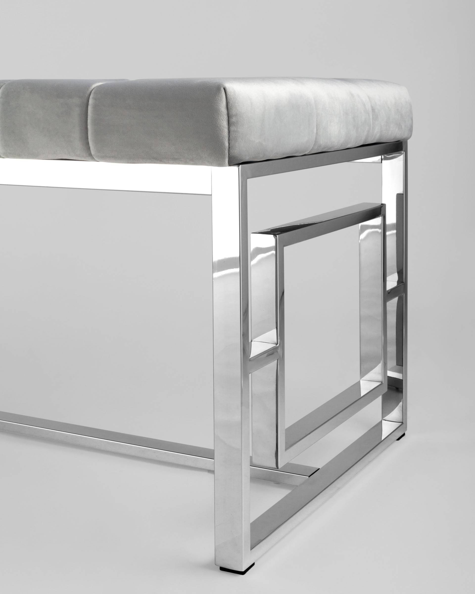 Банкетка Stool Group БРУКЛИН сталь серебро, нержавеющая сталь, обивка сиденья серый велюр