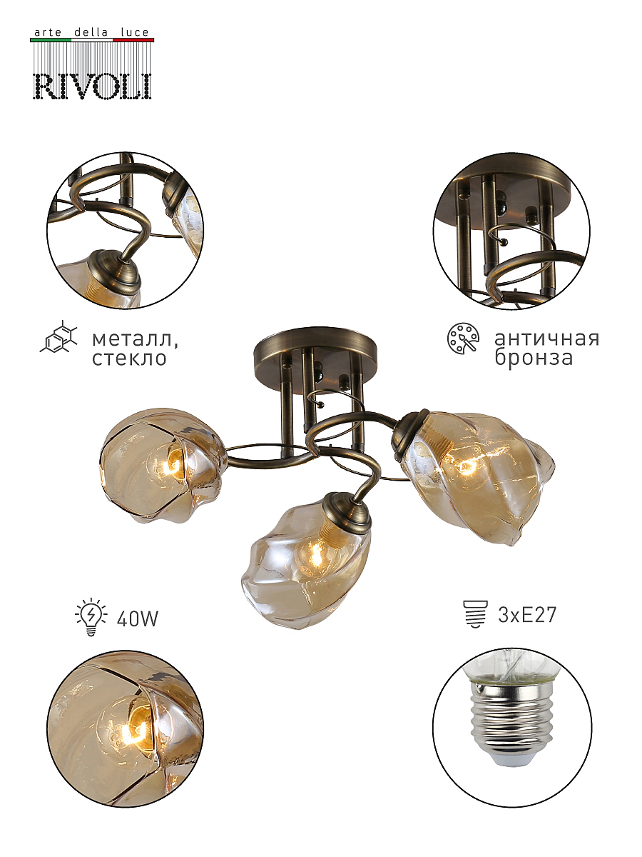 Допускается отличие страны-изготовителя, указанной в характеристиках. Линии производства могут находиться в нескольких государствах. Это не влияет на качество изготовления товара: все заводы данного бренда работают по общим стандартам, а готовые изделия проходят соответствующий контроль.Италия Коллекция Bruna ЦветЦвет арматуры Античная бронза Цвет Бронза Материал арматуры Металл Цвет плафона тонированный Материал плафона Стекло РазмерыВысота (мм) 220 Длина (мм) 480 Ширина (мм) 480 ЭлектрикаКоличество ламп (шт) 3 Цоколь E27 Мощность лампы (Вт) 40 Напряжение (В) 220 Площадь освещения 9 Дополнительная информацияСпособ крепления Планка Степень защиты (IP) IP20 Вес (Кг) 1,28 -