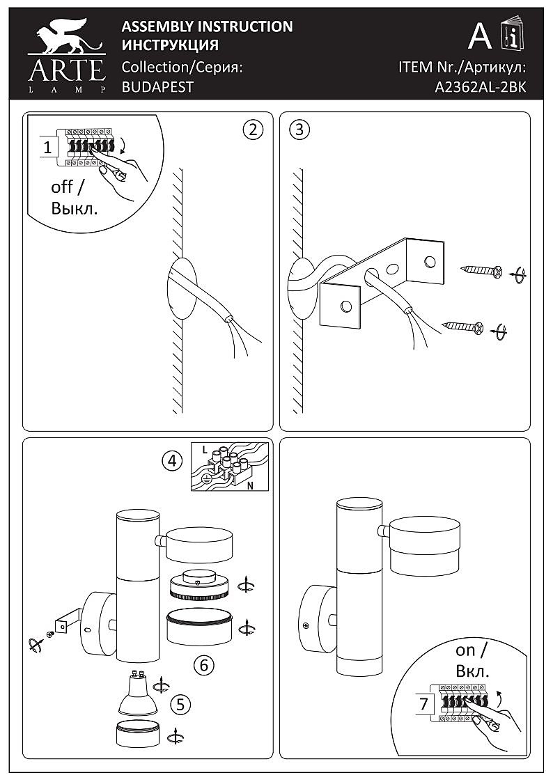 Производитель Arte Lamp Артикул A2362AL-2BK Страна