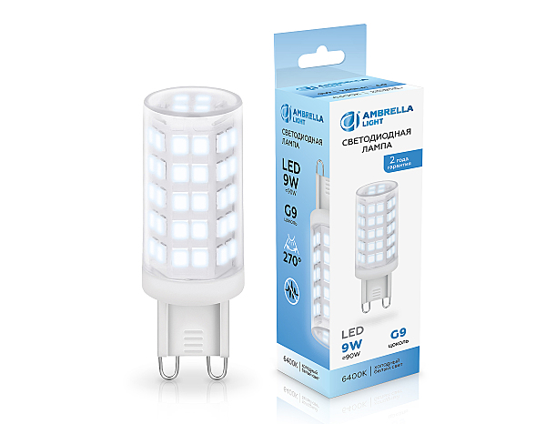 Светодиодная лампа G9, цоколь G9, мощность 9W, класс энергоэффективности А, рассеиватель прозрачный, холодное свечение 6400K, форма "Капсула", 19*54