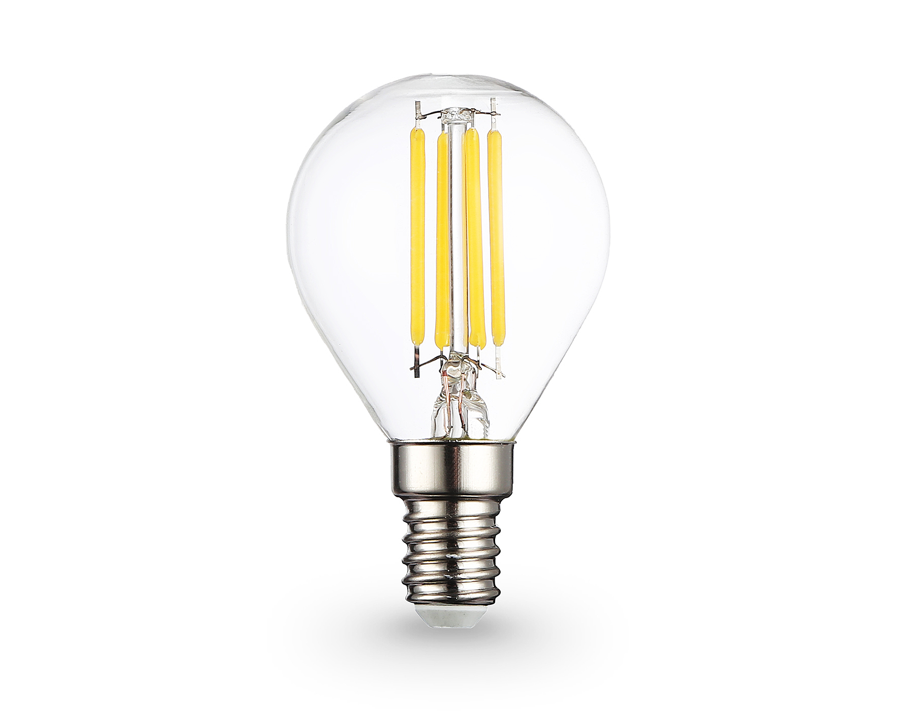 Светодиодная лампа P45 (филамент), цоколь E14, мощность 11W, класс энергоэффективности А, рассеиватель прозрачный, белое свечение 4000K, форма "Шар", 45*78.