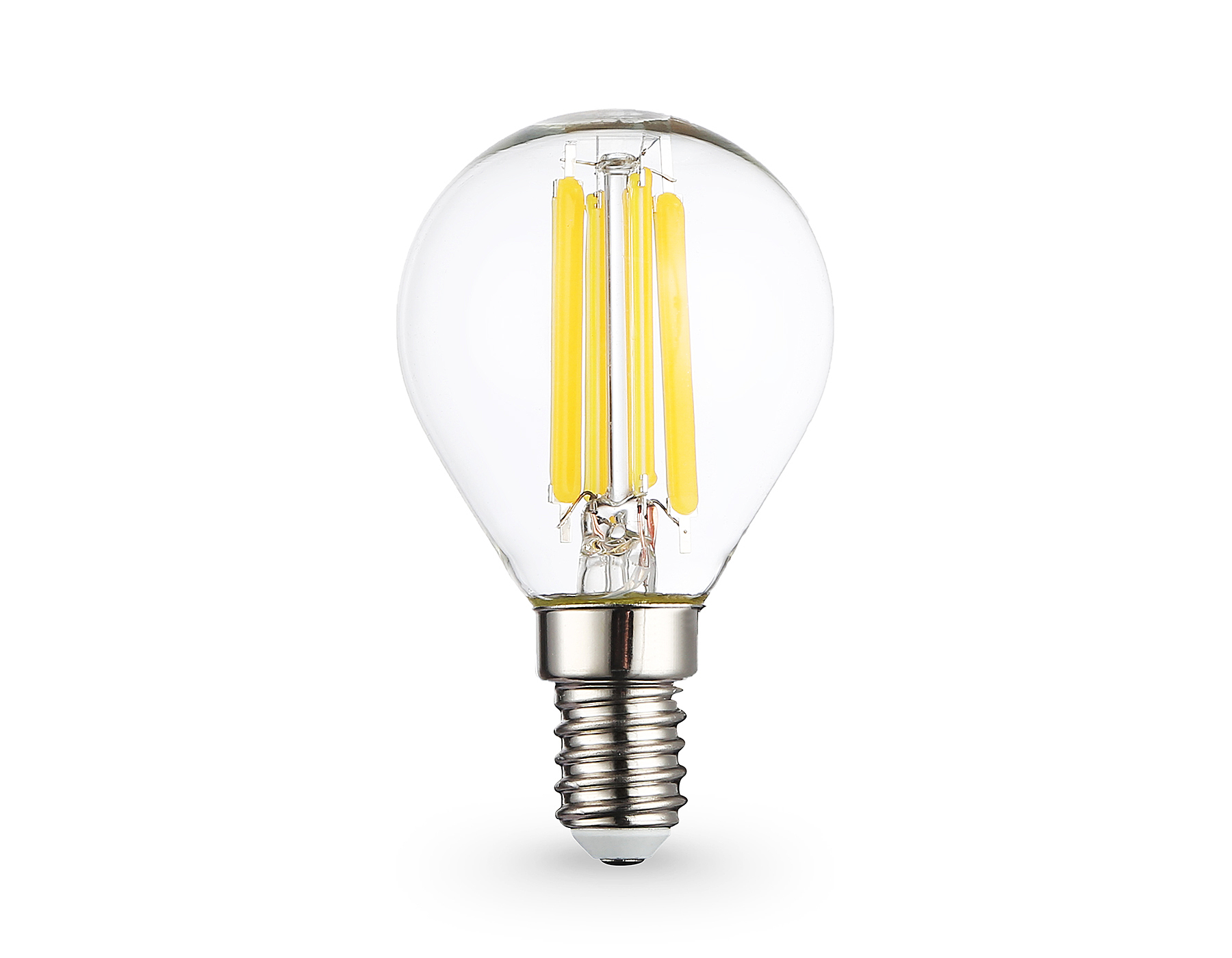 Светодиодная лампа P45 (филамент), цоколь E14, мощность 15W, класс энергоэффективности А, рассеиватель прозрачный, белое свечение 4000K, форма "Шар", 45*78.