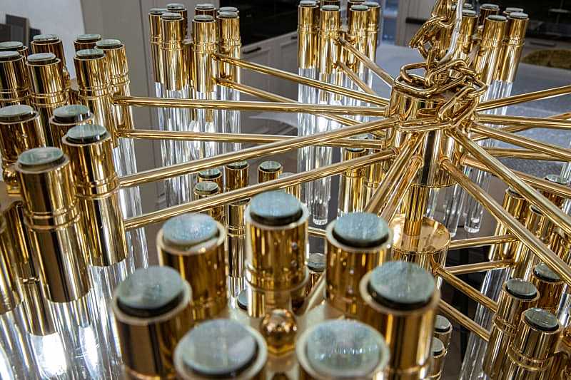 Допускается отличие страны-изготовителя, указанной в характеристиках. Линии производства могут находиться в нескольких государствах. Это не влияет на качество изготовления товара: все заводы данного бренда работают по общим стандартам, а готовые изделия проходят соответствующий контроль.Италия Коллекция Burj ЦветЦвет арматуры Золото, Шампань Цвет Золото Материал арматуры Металл Цвет плафона прозрачный Материал плафона Стекло РазмерыВысота (мм) 650 Диаметр (мм) 850 Ширина (мм) 850 ЭлектрикаКоличество ламп (шт) 16 Цоколь E14 Мощность лампы (Вт) 40 Напряжение (В) 220 Дополнительная информацияТип подвеса На цепи -