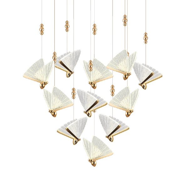 Допускается отличие страны-изготовителя, указанной в характеристиках. Линии производства могут находиться в нескольких государствах. Это не влияет на качество изготовления товара: все заводы данного бренда работают по общим стандартам, а готовые изделия проходят соответствующий контроль.Китай Коллекция Butterfly ЦветЦвет арматуры золотой Цвет Золото Материал арматуры Металл Цвет плафона прозрачный Материал плафона Стекло РазмерыВысота (мм) 2000 Длина (мм) 500 Ширина (мм) 500 ЭлектрикаКоличество ламп (шт) 11 Цоколь LED Тип лампы Светодиодная Мощность лампы (Вт) 3 Дополнительная информацияТехническая оссобеность Полностью светодиодная Тип подвеса На тросах Количество подвесов Много подвесных элементов -