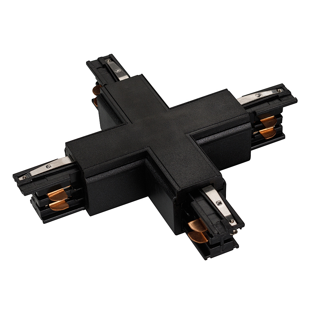 X-образный коннектор для треков 4TR. Цвет черный. 166х166х33 мм с контактами, 99х99х33 мм без контактов.Аналог XTS-38 Global Track Pro. При использовании с треками и аксессуарами другой серии возможно отличие по цвету.