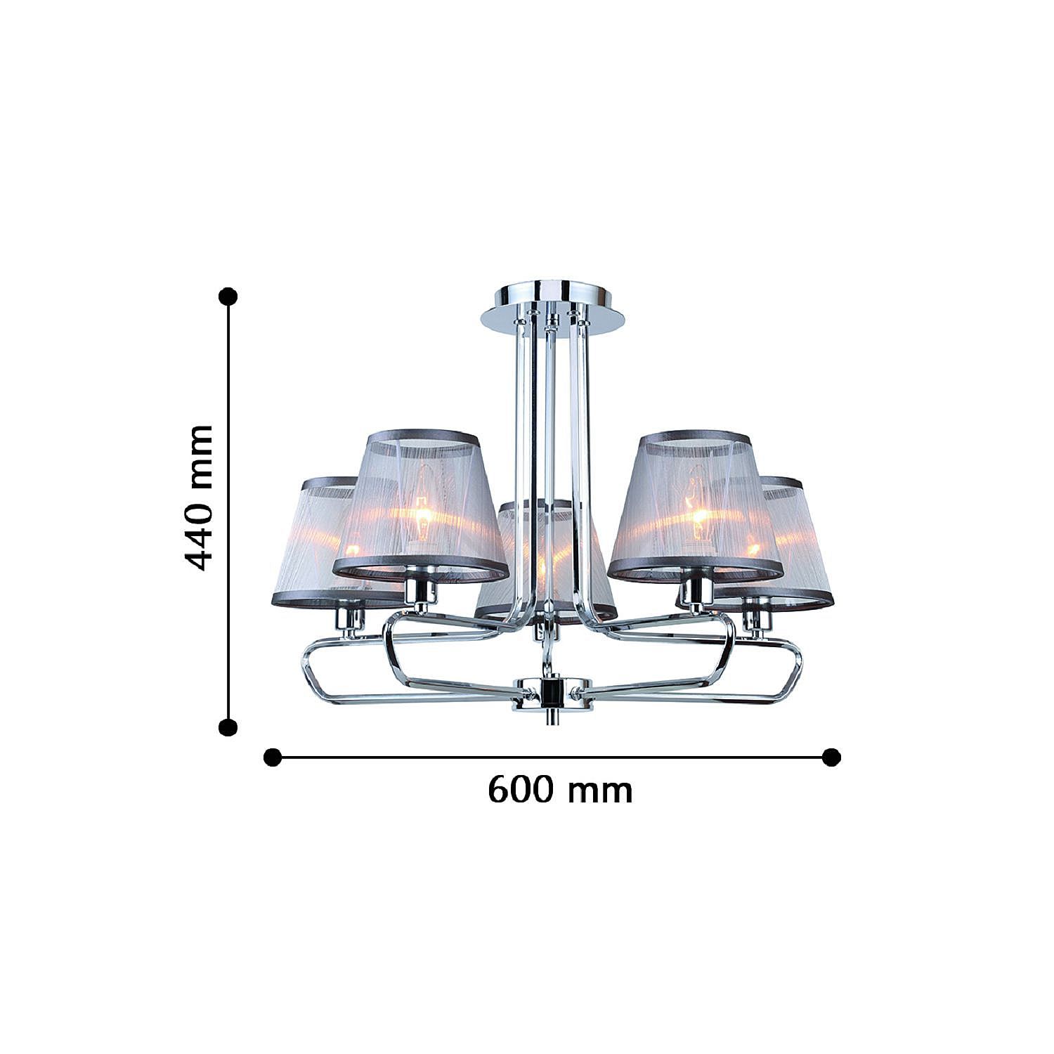 Допускается отличие страны-изготовителя, указанной в характеристиках. Линии производства могут находиться в нескольких государствах. Это не влияет на качество изготовления товара: все заводы данного бренда работают по общим стандартам, а готовые изделия проходят соответствующий контроль.Германия Коллекция Cache ЦветЦвет арматуры Хром Цвет Хром Материал арматуры Металл Цвет плафона прозрачный Материал плафона Органза РазмерыВысота (мм) 440 Диаметр (мм) 600 Ширина (мм) 600 ЭлектрикаКоличество ламп (шт) 5 Цоколь E14 Мощность лампы (Вт) 40 Напряжение (В) 220 Дополнительная информацияСпособ крепления Планка Вес (Кг) 2 -
