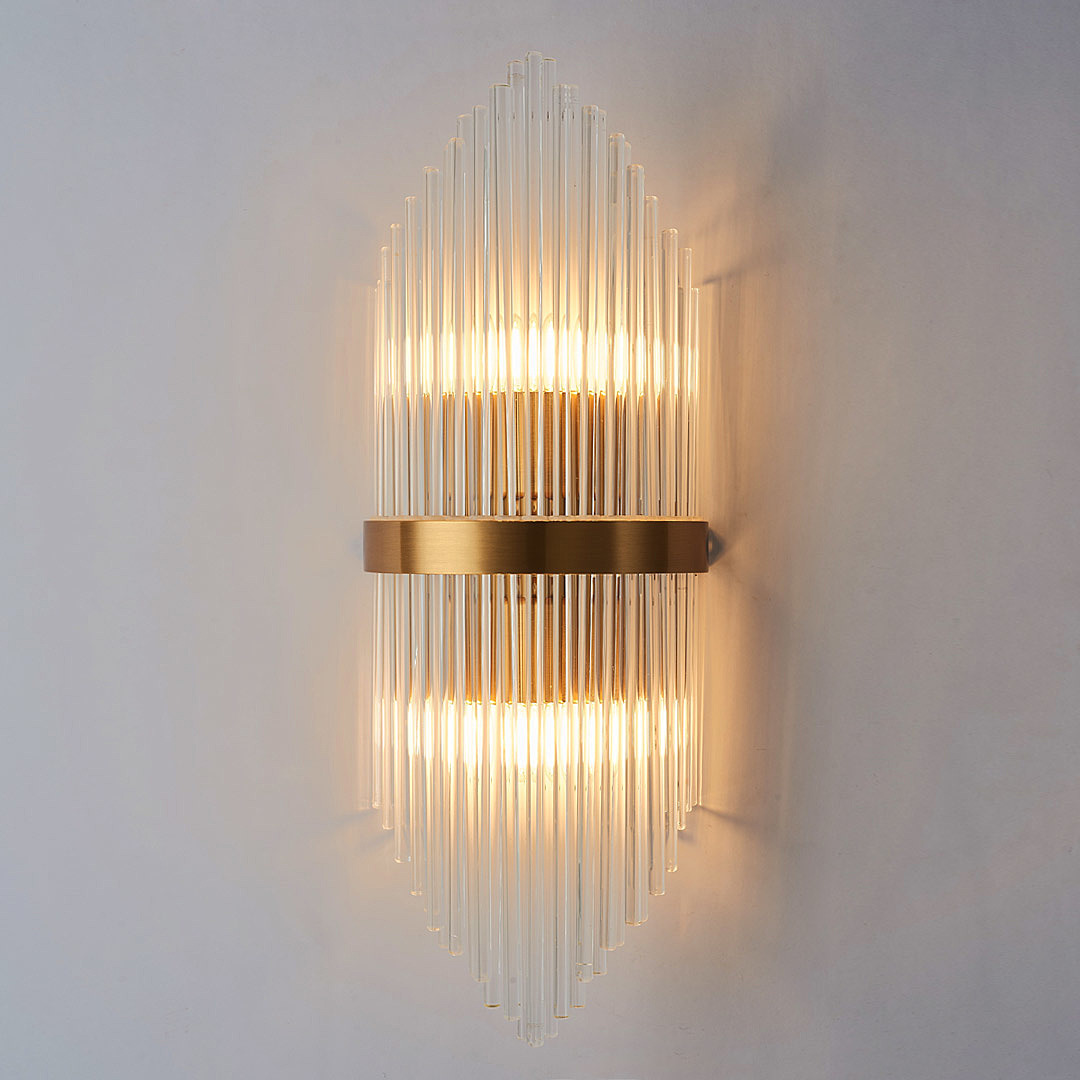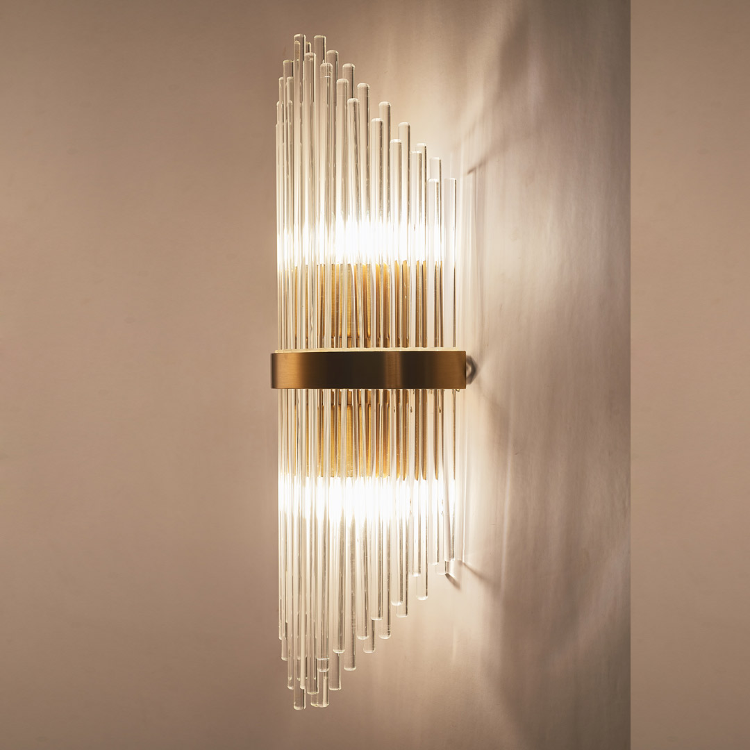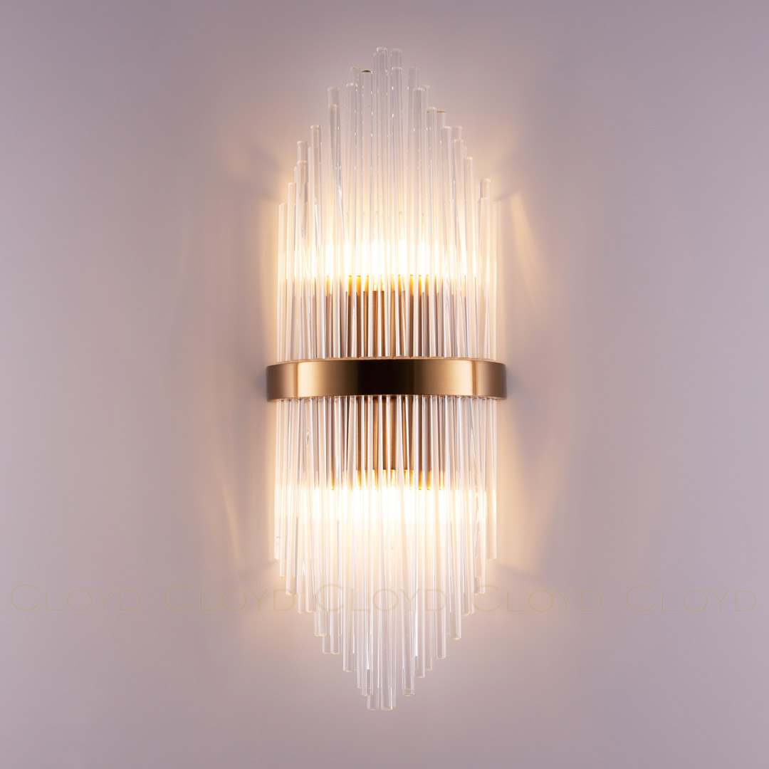 Бра Cloyd CADANCE (Клойд Каданс) W2 / арт.20164, ширина: 20 см. высота: 54 см глубина: 10 см, источник света: E14 (LED ≈ 6 Вт) х 2 шт, цвет металла - латунь.