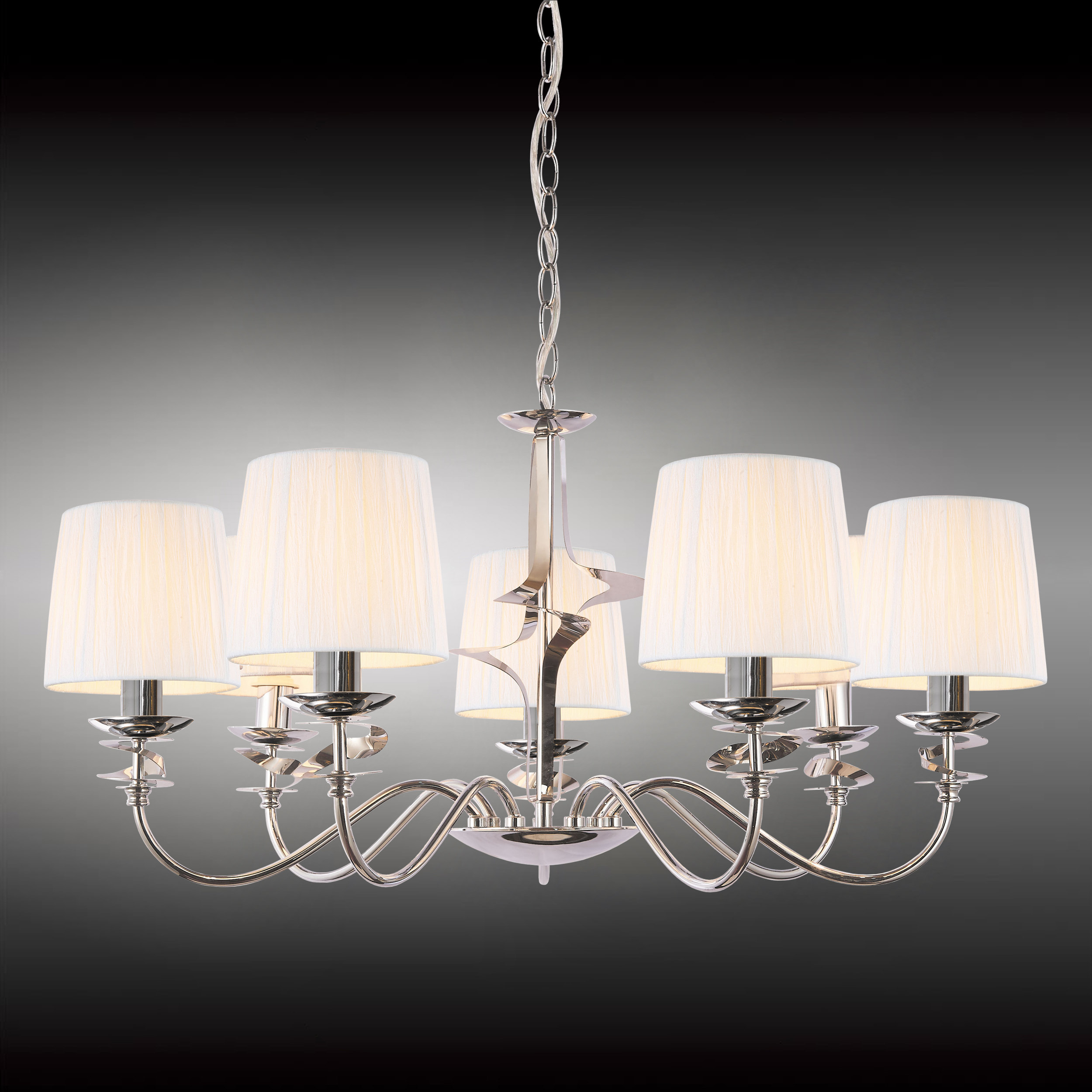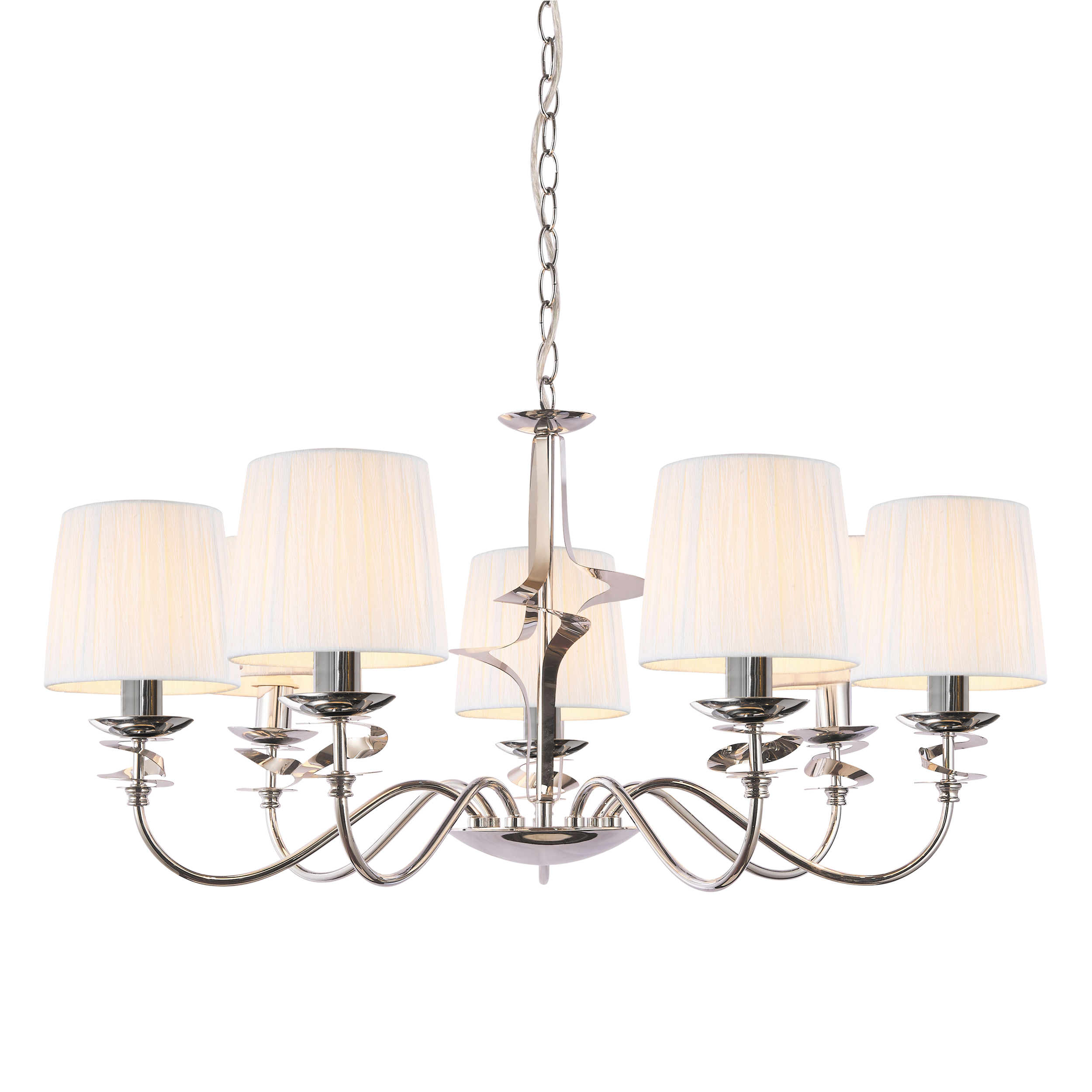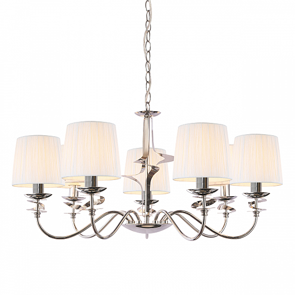 Допускается отличие страны-изготовителя, указанной в характеристиках. Линии производства могут находиться в нескольких государствах. Это не влияет на качество изготовления товара: все заводы данного бренда работают по общим стандартам, а готовые изделия проходят соответствующий контроль.Китай Коллекция Calia ЦветЦвет арматуры Хром Цвет Хром Материал арматуры Металл Цвет плафона Белый Материал плафона Ткань РазмерыВысота (мм) 1300 Диаметр (мм) 800 Высота минимальная (мм) 430 Ширина (мм) 800 ЭлектрикаКоличество ламп (шт) 7 Цоколь E14 Мощность лампы (Вт) 40 Напряжение (В) 220 Дополнительная информацияСпособ крепления Крюк Тип подвеса На цепи -