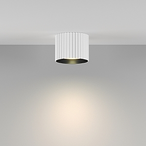 Дизайнерская серия. Графичая фактура. Поворотный механизм определенных моделей. В ассортименте накладные светильники, со встраиваемой чашей, настенные, подвесные, а также трековые модели для однофазного шинопровода. Три трендовых оттенка: чёрный, белый и латунь. Источник света - сменная лампа с цоколем GU10.
