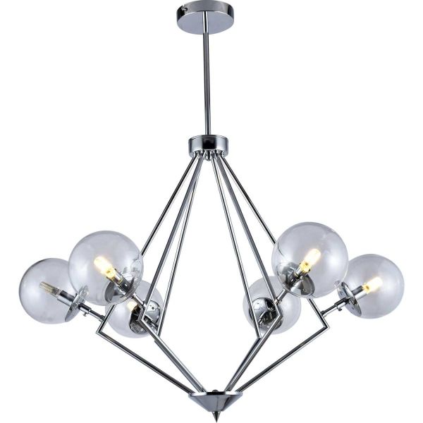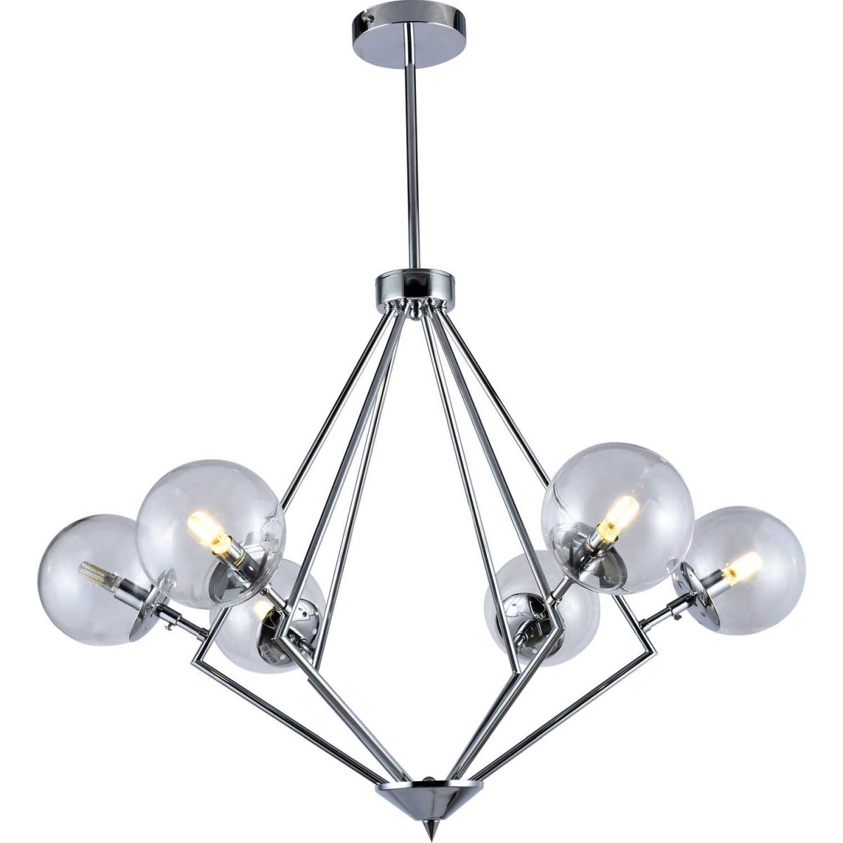 Люстра потолочная на штанге коллекции Campilo выполнена в стиле модерн. Арматура изготовлена из окрашенного металла в цветовом исполнении "хром". Плафоны люстры выполнены из прозрачного стекла.