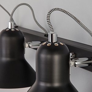 Допускается отличие страны-изготовителя, указанной в характеристиках. Линии производства могут находиться в нескольких государствах. Это не влияет на качество изготовления товара: все заводы данного бренда работают по общим стандартам, а готовые изделия проходят соответствующий контроль.Китай Коллекция Canotier ЦветЦвет арматуры Хром, Черный Цвет Черный Материал арматуры Металл Цвет плафона Черный Материал плафона Металл РазмерыВысота (мм) 152 Длина (мм) 550 Ширина (мм) 145 ЭлектрикаКоличество ламп (шт) 3 Цоколь E27 Мощность лампы (Вт) 25 Напряжение (В) 220 Площадь освещения 5 Дополнительная информацияСпособ крепления Планка Степень защиты (IP) IP20 Техническая оссобеность Поворотный -