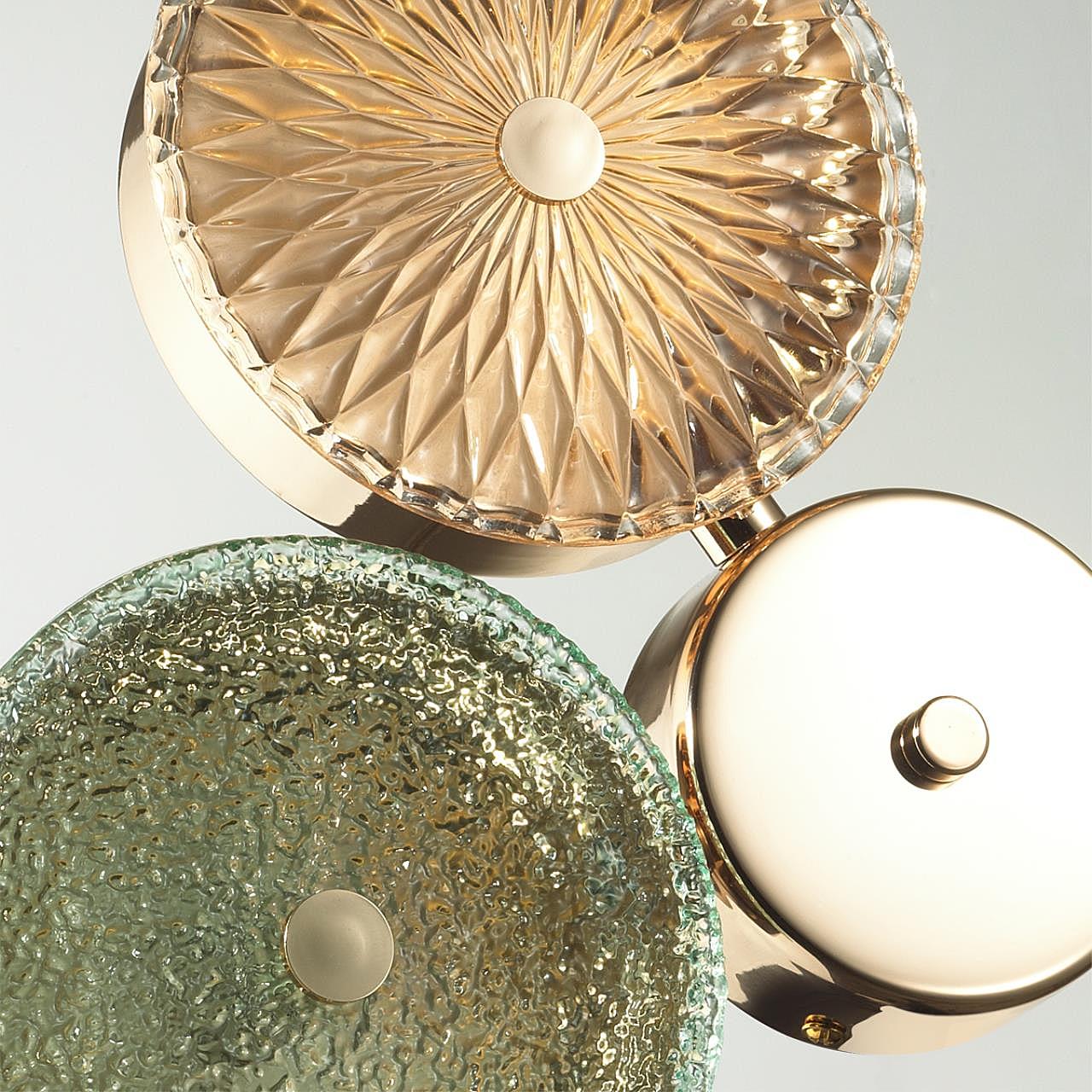 Линия светильников Caramella получила своё название благодаря сходству с карамельными конфетами. В ней сочетаются стекло нежных пастельных оттенков, золотой металл, разнообразные паттерны стёкол и современный LED источник света. Светильники Caramella прекрасно впишутся как в современные, так и в классические интерьеры, благодаря своему изящнуму дизайну. Из подвесных и настенных светильников линии можно создавать разнообразные композиции, внося в интерьер уникальыне акценты.