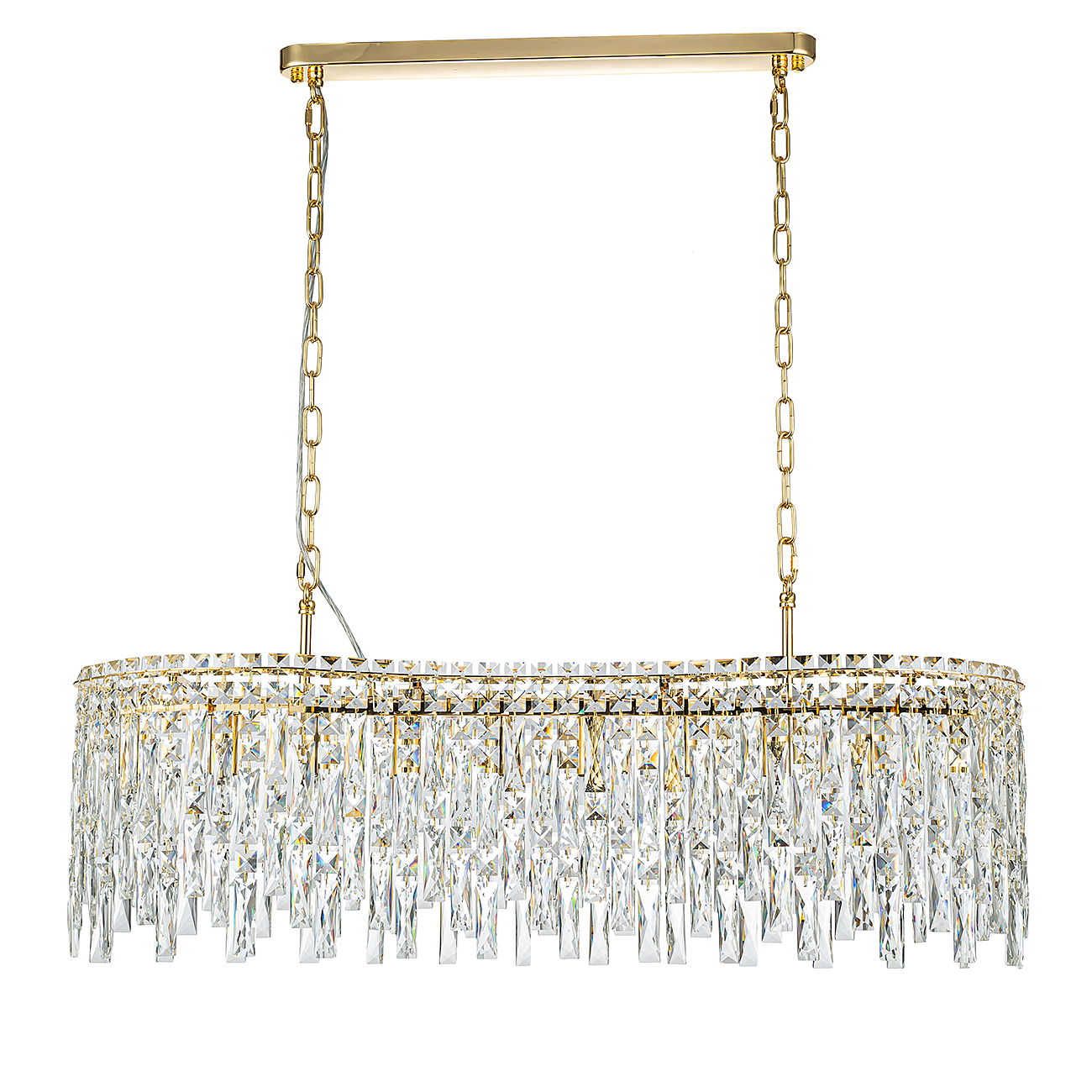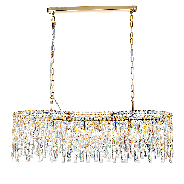 Допускается отличие страны-изготовителя, указанной в характеристиках. Линии производства могут находиться в нескольких государствах. Это не влияет на качество изготовления товара: все заводы данного бренда работают по общим стандартам, а готовые изделия проходят соответствующий контроль.Великобритания Коллекция Carletti ЦветЦвет арматуры Золото Цвет Золото Материал арматуры Металл Цвет декора прозрачный Материал декора Хрусталь РазмерыВысота (мм) 1115 Длина (мм) 1000 Высота минимальная (мм) 315 Ширина (мм) 300 ЭлектрикаКоличество ламп (шт) 10 Цоколь E14 Мощность лампы (Вт) 40 Напряжение (В) 220 Площадь освещения 26 Дополнительная информацияСпособ крепления Планка Степень защиты (IP) IP20 Вес (Кг) 10.3 Тип подвеса На тросах -
