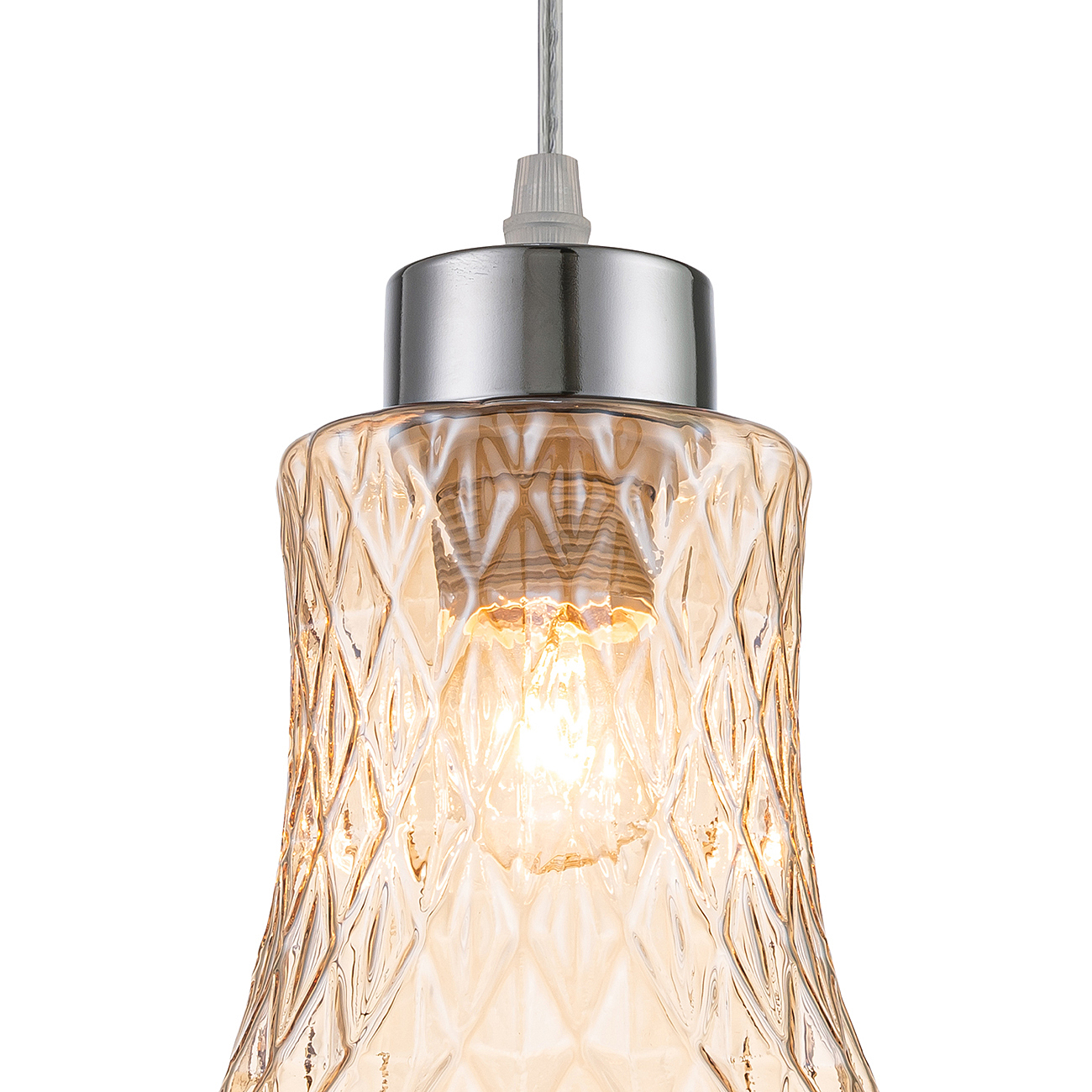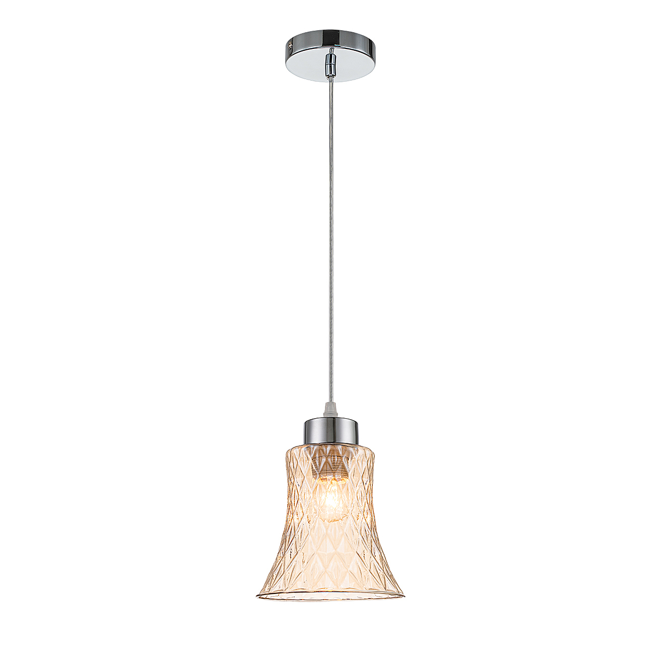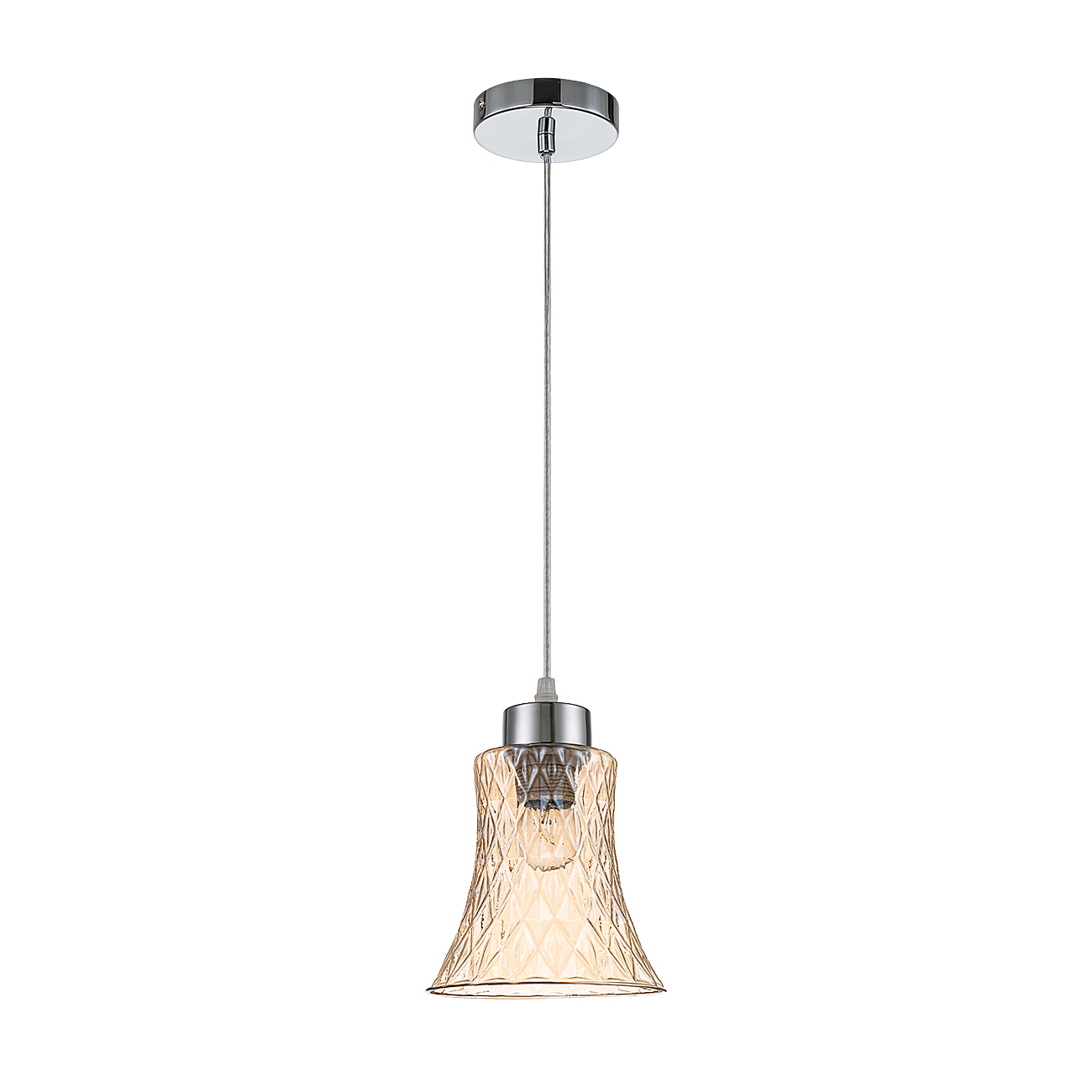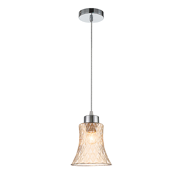 Подвесной светильник 1x40Вт E27, металл/стекло, хром/янтарный