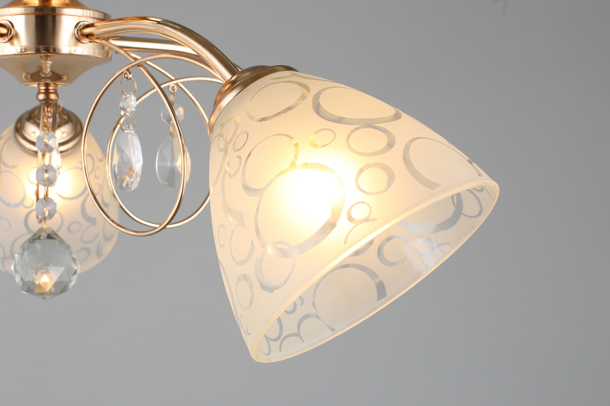 Допускается отличие страны-изготовителя, указанной в характеристиках. Линии производства могут находиться в нескольких государствах. Это не влияет на качество изготовления товара: все заводы данного бренда работают по общим стандартам, а готовые изделия проходят соответствующий контроль.Китай Коллекция Castellaro ЦветЦвет арматуры Золото Цвет Золото Материал арматуры Металл Цвет плафона Белый Материал декора Хрусталь Материал плафона Стекло РазмерыВысота (мм) 230 Диаметр (мм) 600 Ширина (мм) 600 ЭлектрикаКоличество ламп (шт) 5 Цоколь E27 Лампочки в комплекте Нет в комплекте Мощность лампы (Вт) 60 Общая мощность (Вт) 300 Напряжение (В) 220 Световой поток 3150 Дополнительная информацияСпособ крепления Планка Вес (Кг) 2.5 -