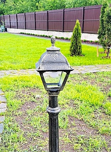 Допускается отличие страны-изготовителя, указанной в характеристиках. Линии производства могут находиться в нескольких государствах. Это не влияет на качество изготовления товара: все заводы данного бренда работают по общим стандартам, а готовые изделия проходят соответствующий контроль.Италия Коллекция Cefa ЦветЦвет арматуры Античная бронза Цвет Бронза Материал арматуры Композитный полимер Цвет плафона прозрачный Материал плафона Полиметилметакрилат (оргстекло) РазмерыВысота (мм) 1470 Диаметр (мм) 230 Ширина (мм) 230 ЭлектрикаКоличество ламп (шт) 1 Цоколь E27 Тип лампы Накаливания, Энергосберегающая (КЛЛ) Мощность лампы (Вт) 60 Напряжение (В) 220 Дополнительная информацияСтепень защиты (IP) IP55 Вес (Кг) 8 -