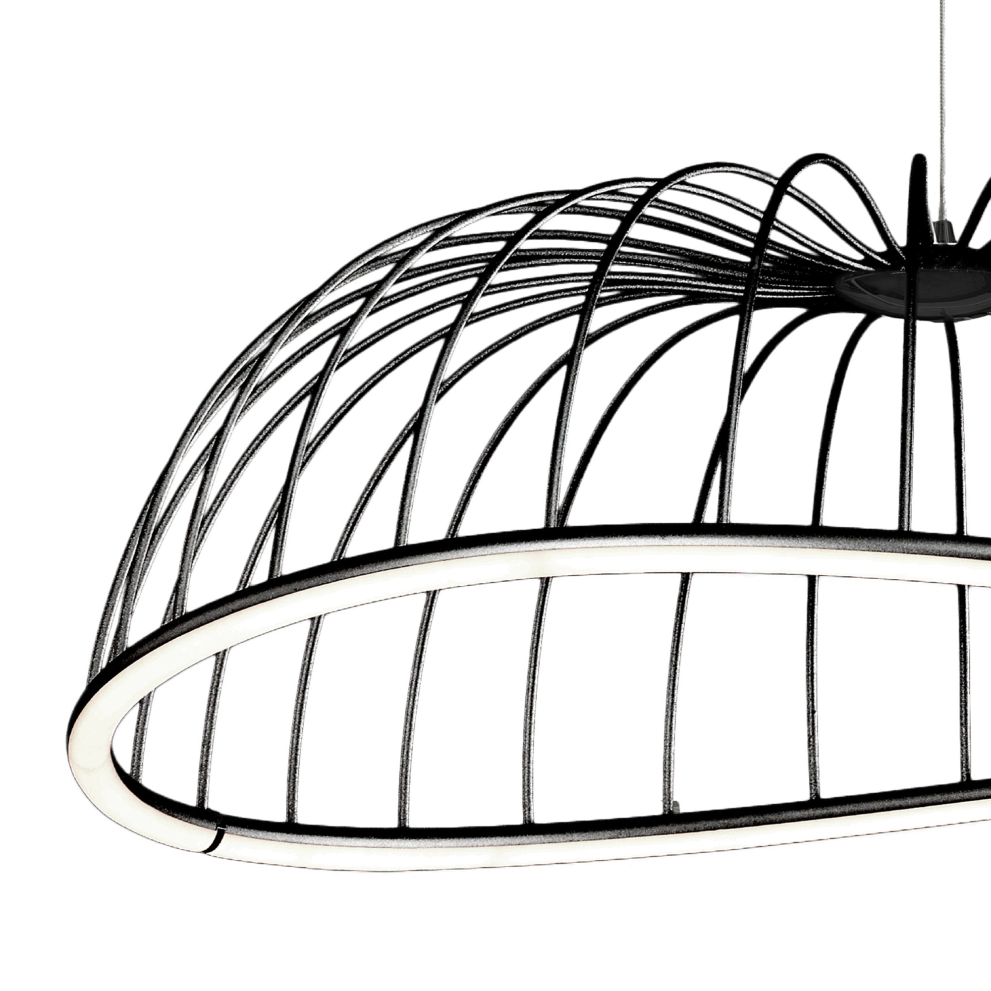 Дизайн CELESTE вдохновлен астрологией и космическими телами. Подобно линии, образующей орбиту, луч света светильника может напоминать траекторию движения небесного тела. Полая полусферическая алюминиевая конструкция имеет диффузор, который обеспечивает разнонаправленное рассеивание света светодиода 3000K.Воздушная конструкция CELESTE впишется как в самый смелый и современный интерьер, так и в уютный и самый простой. Коллекция представлена в трех размерах, что позволяет подобрать идеальное световое решение под любой размер комнаты. Также подвесные светильники доступны в черной и белой отделке, делая предмет нейтральным и универсальным.