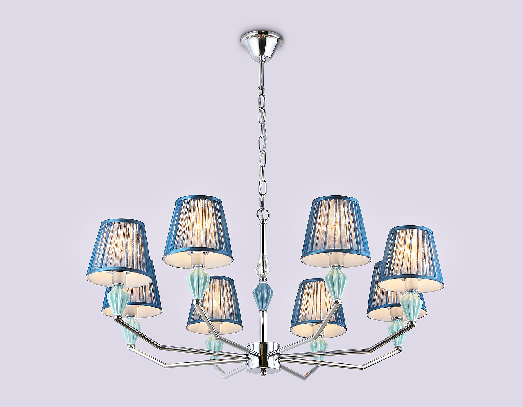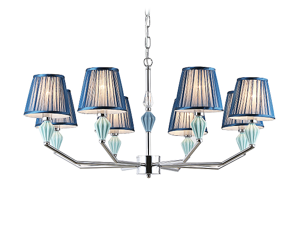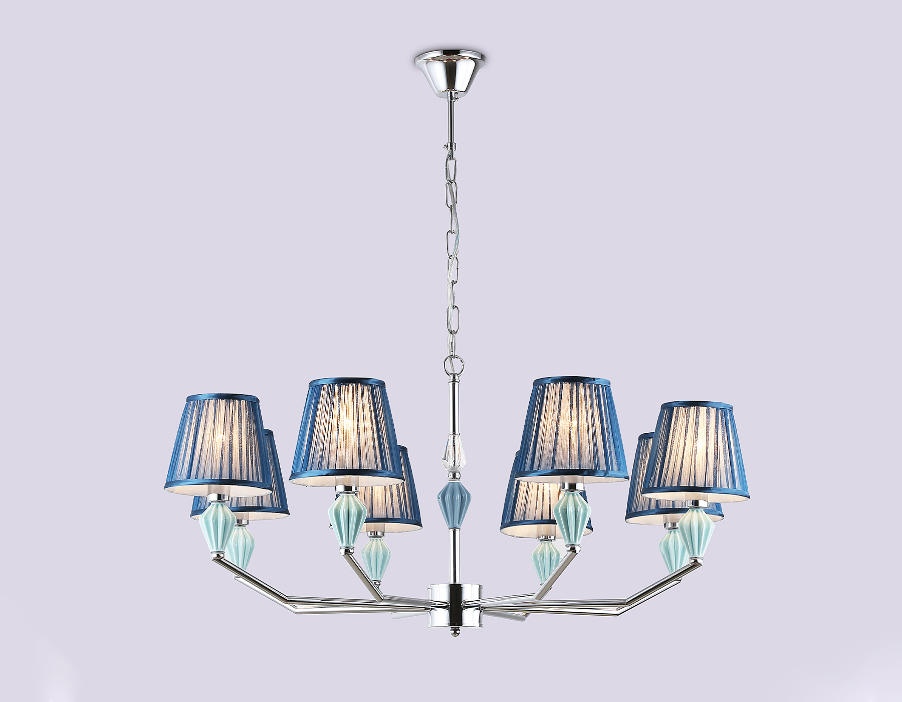 Подвесная люстра с абажуром из коллекции HIGH LIGHT. Модель LH75063 представлена в классическом стиле. Люстра выполнена из тканевого плафона темно-синего цвета, металлического каркаса цвета хром и декорирована элементами из керамики. Для данной модели подойдут лампы с цоколем Е14. Люстра будет прекрасным дополнением в любом помещении.