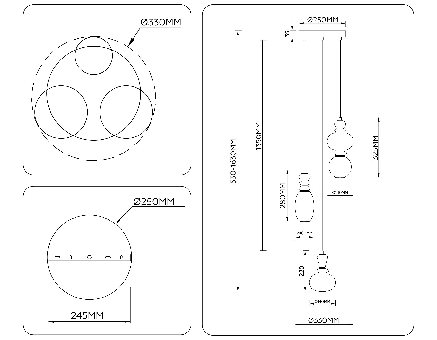 Допускается отличие страны-изготовителя, указанной в характеристиках. Линии производства могут находиться в нескольких государствах. Это не влияет на качество изготовления товара: все заводы данного бренда работают по общим стандартам, а готовые изделия проходят соответствующий контроль.Россия Коллекция Ceramo Modern ЦветЦвет арматуры Черный Цвет Черный Материал арматуры Металл Цвет декора белый, синий, кофе Цвет плафона Белый Материал декора Фарфор Материал плафона Стекло РазмерыВысота (мм) 1630 Диаметр (мм) 330 Ширина (мм) 330 Диаметр основания 250 ЭлектрикаКоличество ламп (шт) 4 Цоколь LED Мощность лампы (Вт) 19 Напряжение (В) 220 Световой поток 2220 Срок службы, ч 50000 Цветовая температура 3000 Дополнительная информацияСпособ крепления Планка Степень защиты (IP) IP20 Техническая оссобеность Полностью светодиодная Тип подвеса На тросах Количество подвесов Много подвесных элементов -