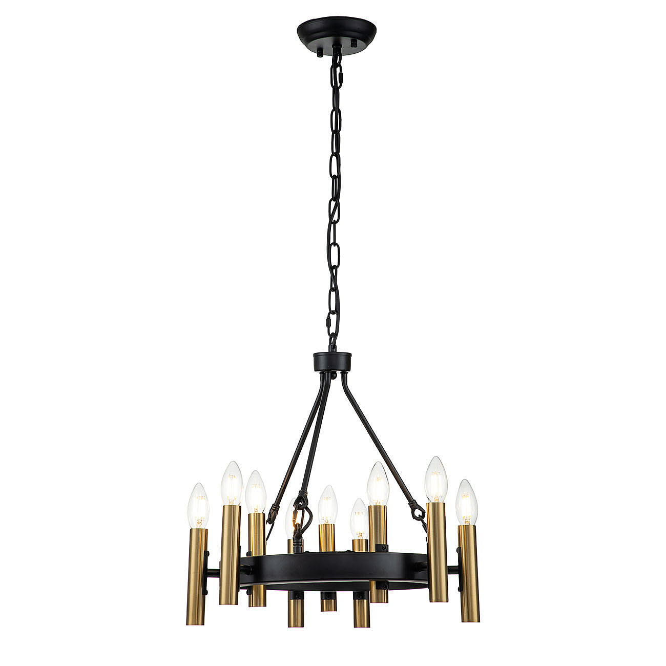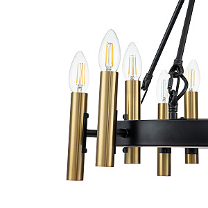 Традиции в современном стиле - именно так можно охарактеризовать серию итальянских светильников Cero. Плафоны в виде золотых свечей будто бы парят в воздухе, но арматура из черного кованого металла удерживает их, придавая всей конструкции завершенный вид. Такой минималистичный, но элегантный светильник станет главным акцентом вашего дизайна. Размер 460*460*445/1245 МощностьE14 40W х 9 ЦветЧЕРНЫЙ,ЗОЛОТОЙ Материал МЕТАЛЛ