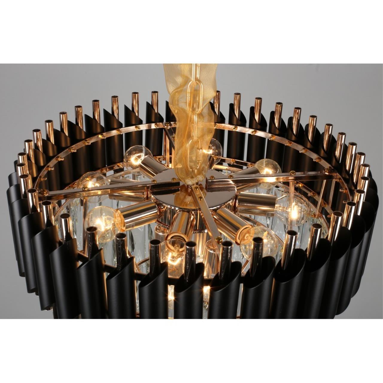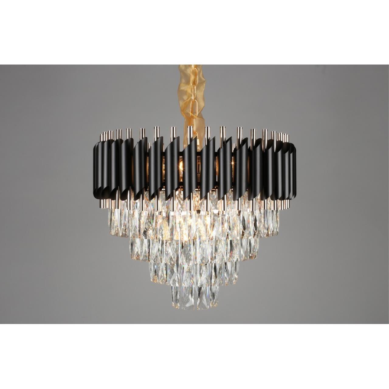 Допускается отличие страны-изготовителя, указанной в характеристиках. Линии производства могут находиться в нескольких государствах. Это не влияет на качество изготовления товара: все заводы данного бренда работают по общим стандартам, а готовые изделия проходят соответствующий контроль.Китай Коллекция Certaldo ЦветЦвет арматуры Золото, Черный Цвет Черный Материал арматуры Металл Цвет декора прозрачный Цвет плафона прозрачный Материал декора Хрусталь Материал плафона Хрусталь РазмерыВысота (мм) 1100 Диаметр (мм) 490 Высота минимальная (мм) 600 Ширина (мм) 490 ЭлектрикаКоличество ламп (шт) 12 Цоколь E14 Лампочки в комплекте Нет в комплекте Мощность лампы (Вт) 40 Общая мощность (Вт) 480 Напряжение (В) 220 Световой поток 5040 Дополнительная информацияСпособ крепления Крюк Вес (Кг) 11.6 Тип подвеса На цепи -