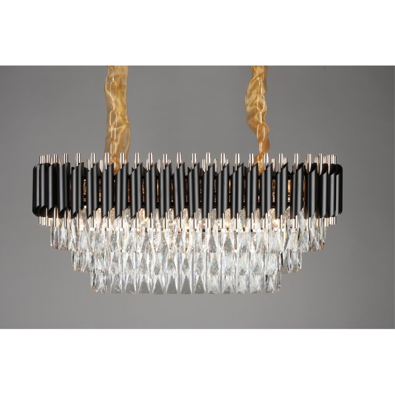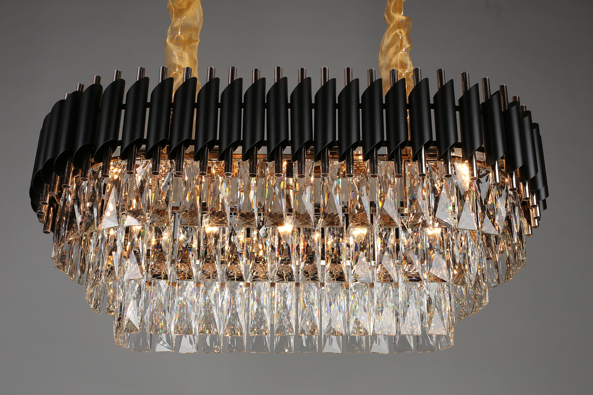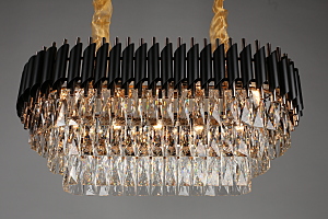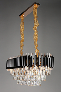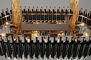 Допускается отличие страны-изготовителя, указанной в характеристиках. Линии производства могут находиться в нескольких государствах. Это не влияет на качество изготовления товара: все заводы данного бренда работают по общим стандартам, а готовые изделия проходят соответствующий контроль.Китай Коллекция Certaldo ЦветЦвет арматуры Золото, Черный Цвет Черный Материал арматуры Металл Цвет декора прозрачный Цвет плафона прозрачный Материал декора Хрусталь Материал плафона Хрусталь РазмерыВысота (мм) 1000 Длина (мм) 800 Высота минимальная (мм) 500 Ширина (мм) 400 ЭлектрикаКоличество ламп (шт) 13 Цоколь E14 Лампочки в комплекте Нет в комплекте Мощность лампы (Вт) 40 Общая мощность (Вт) 520 Напряжение (В) 220 Световой поток 5460 Дополнительная информацияСпособ крепления Крюк Вес (Кг) 16.8 Тип подвеса На цепи -