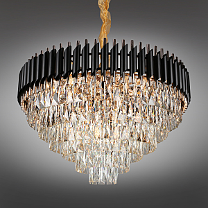 Допускается отличие страны-изготовителя, указанной в характеристиках. Линии производства могут находиться в нескольких государствах. Это не влияет на качество изготовления товара: все заводы данного бренда работают по общим стандартам, а готовые изделия проходят соответствующий контроль.Китай Коллекция Certaldo ЦветЦвет арматуры Золото, Черный Цвет Черный Материал арматуры Металл Цвет декора прозрачный Цвет плафона прозрачный Материал декора Хрусталь Материал плафона Хрусталь РазмерыВысота (мм) 1000 Диаметр (мм) 800 Высота минимальная (мм) 650 Ширина (мм) 800 ЭлектрикаКоличество ламп (шт) 24 Цоколь E14 Лампочки в комплекте Нет в комплекте Мощность лампы (Вт) 40 Общая мощность (Вт) 960 Напряжение (В) 220 Световой поток 10080 Дополнительная информацияСпособ крепления Крюк Вес (Кг) 24.8 Тип подвеса На цепи -