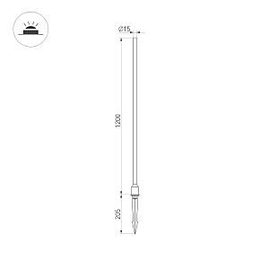 Декоративный ландшафтный светильник. Мощность 3.5 Вт, св. поток 40 лм, 11 лм/Вт, теплый 3000 K, CRI>80, угол 180°, напряжение питания 230 В. Темно-cерый фигурный корпус из алюминия, экран PMMA+PC, степень защиты IP65. Размер: диаметр 15 мм, высота 1200 мм. Монтаж в грунт.