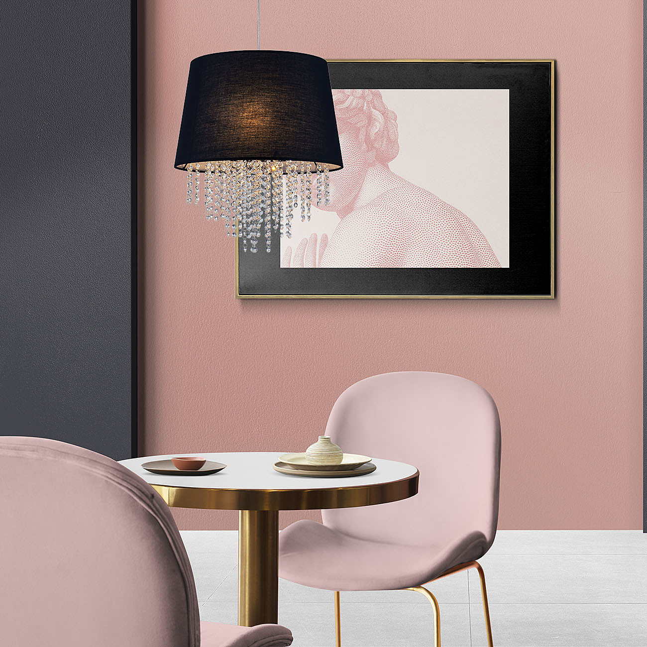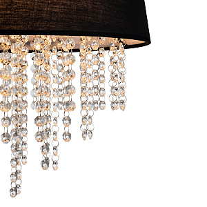 Подвесной светильник 3х60Вт Е27, металл/ткань/хрусталь, чёрный