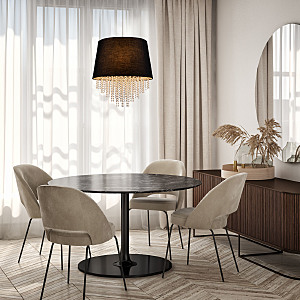 Подвесной светильник 5х60Вт Е27, металл/ткань/хрусталь, чёрный