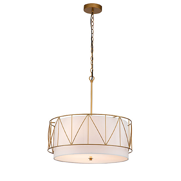 Допускается отличие страны-изготовителя, указанной в характеристиках. Линии производства могут находиться в нескольких государствах. Это не влияет на качество изготовления товара: все заводы данного бренда работают по общим стандартам, а готовые изделия проходят соответствующий контроль.Великобритания Коллекция Charme ЦветЦвет арматуры Золото Цвет Золото Материал арматуры Металл Цвет плафона Белый Материал плафона ткань металл РазмерыВысота (мм) 1370 Длина (мм) 520 Высота минимальная (мм) 570 Ширина (мм) 520 Диаметр абажура-плафона 520*520 Высота абажура-плафона 220 ЭлектрикаКоличество ламп (шт) 3 Цоколь E27 Мощность лампы (Вт) 40 Напряжение (В) 220 Площадь освещения 7 Дополнительная информацияСпособ крепления Планка Степень защиты (IP) IP20 Вес (Кг) 2,9 Тип подвеса На цепи -