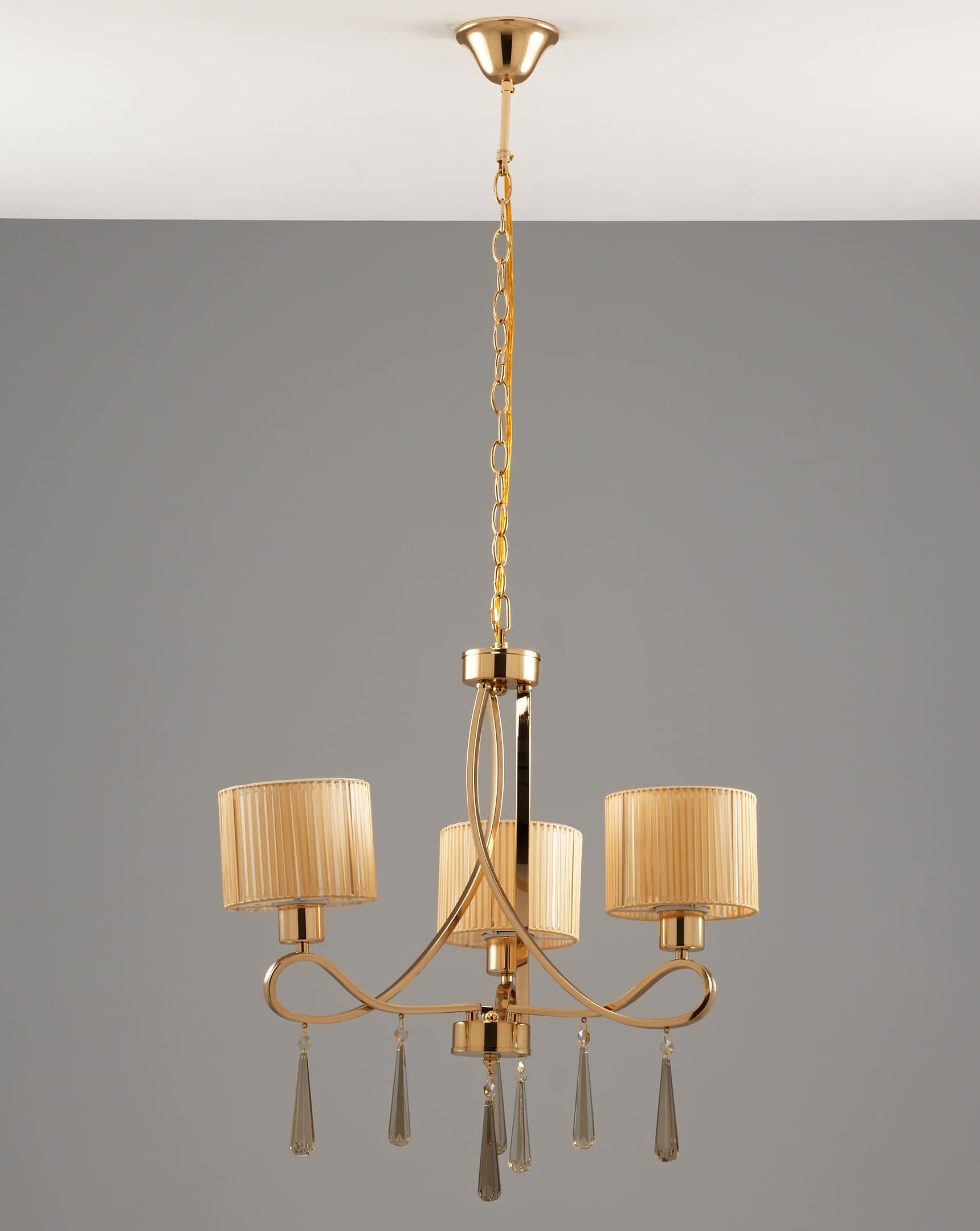 Допускается отличие страны-изготовителя, указанной в характеристиках. Линии производства могут находиться в нескольких государствах. Это не влияет на качество изготовления товара: все заводы данного бренда работают по общим стандартам, а готовые изделия проходят соответствующий контроль.Италия Коллекция Chilly ЦветЦвет арматуры золотой Цвет Золото Материал арматуры Металл Цвет декора Золотой Цвет плафона золотой Материал плафона Ткань РазмерыВысота (мм) 1150 Ширина (мм) 550 Глубина (мм) 550 ЭлектрикаКоличество ламп (шт) 3 Цоколь E27 Тип лампы Светодиодная, Накаливания Лампочки в комплекте нет Мощность лампы (Вт) 60 Общая мощность (Вт) 180 Напряжение (В) 220-240 Площадь освещения 14 Дополнительная информацияСпособ крепления на крюк Степень защиты (IP) 20 Вес (Кг) 2.8 Тип подвеса На цепи -