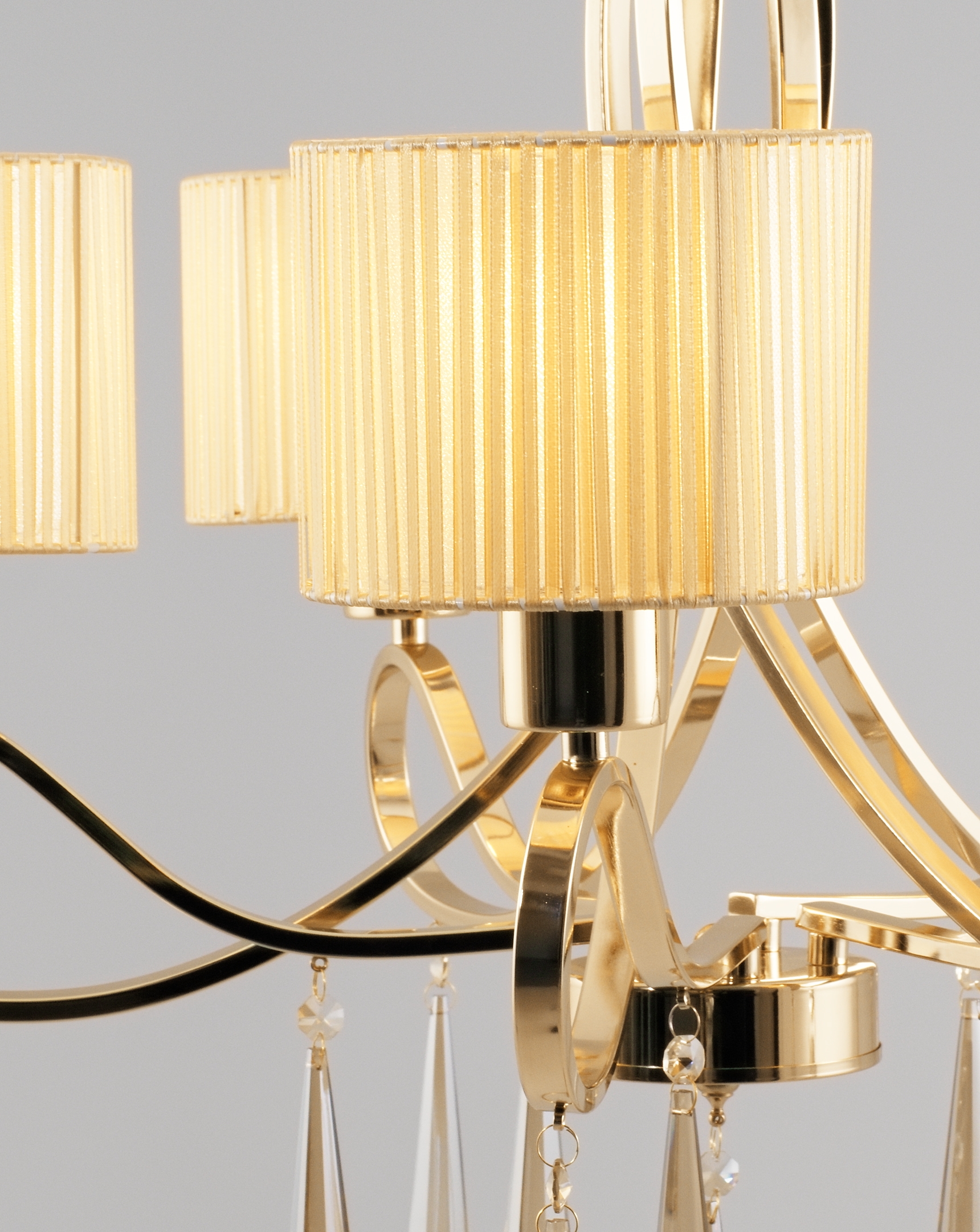 <p>Подвесная люстра из коллекции Chilly. Плафоны обтянуты нитями кремового цвета, которые мягко рассеивают свет. Металлический каркас с витиеватым дизайном декорирован хрустальными подвесками, дополняя изящный и роскошный вид конструкции. Подвесная люстра имеет простой и надёжный способ крепления на крюк. Благодаря цепи возможно регулировать высоту светильника. Для освещения подходят лампы накаливания или LED с цоколем E27. Люстра станет отличным вариантом для зала, гостиной и холла.</p>