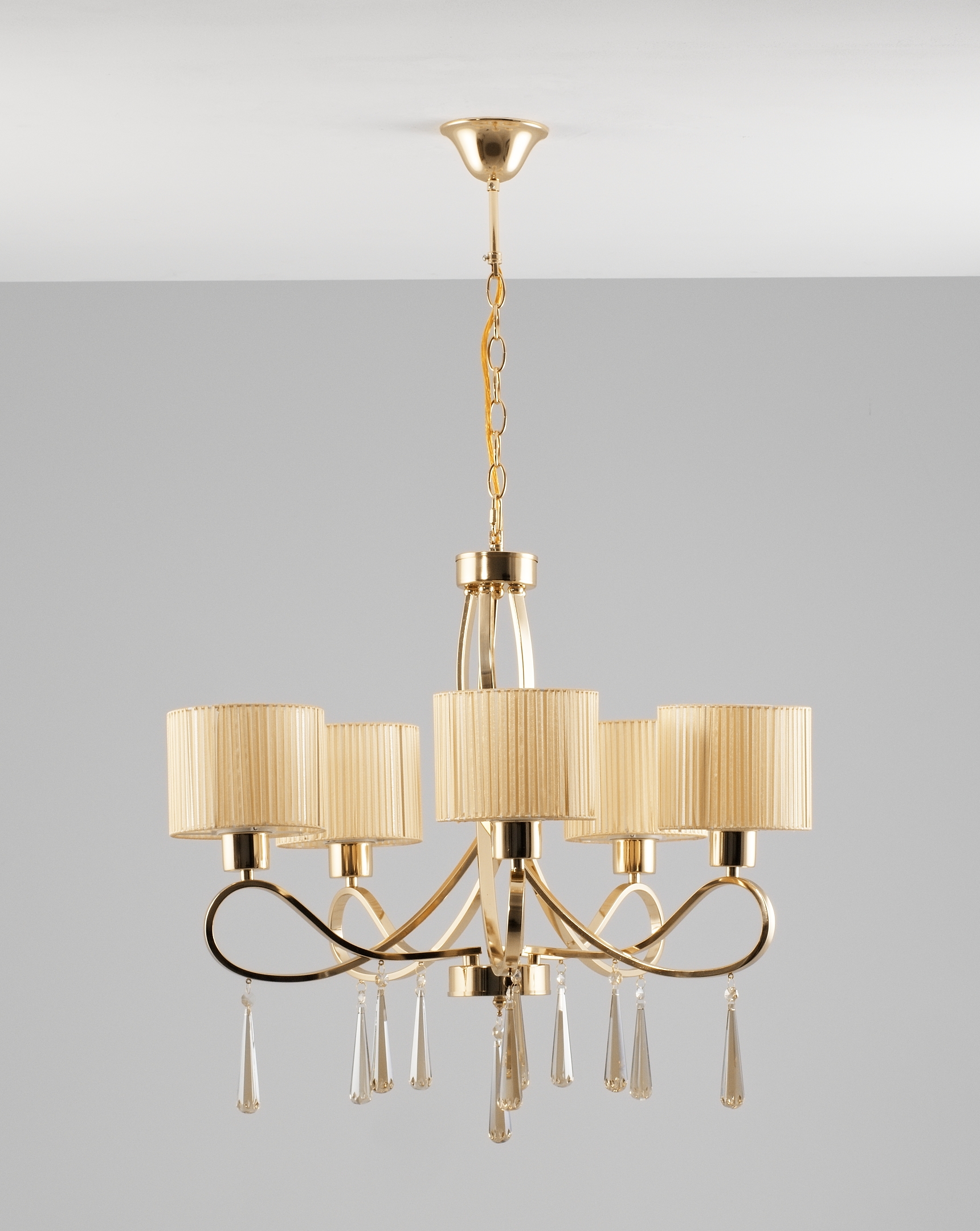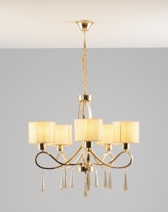 Допускается отличие страны-изготовителя, указанной в характеристиках. Линии производства могут находиться в нескольких государствах. Это не влияет на качество изготовления товара: все заводы данного бренда работают по общим стандартам, а готовые изделия проходят соответствующий контроль.Италия Коллекция Chilly ЦветЦвет арматуры золотой Цвет Золото Материал арматуры Металл Цвет декора Золотой Цвет плафона золотой Материал плафона Ткань РазмерыВысота (мм) 1180 Ширина (мм) 650 ЭлектрикаКоличество ламп (шт) 5 Цоколь E27 Тип лампы Светодиодная, Накаливания Лампочки в комплекте Нет в комплекте Мощность лампы (Вт) 60 Общая мощность (Вт) 300 Напряжение (В) 220 Площадь освещения 18 Дополнительная информацияСпособ крепления Крюк Степень защиты (IP) IP20 Вес (Кг) 4.2 Тип подвеса На цепи -
