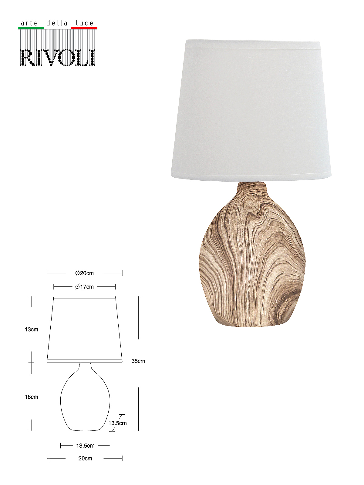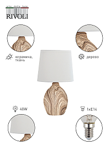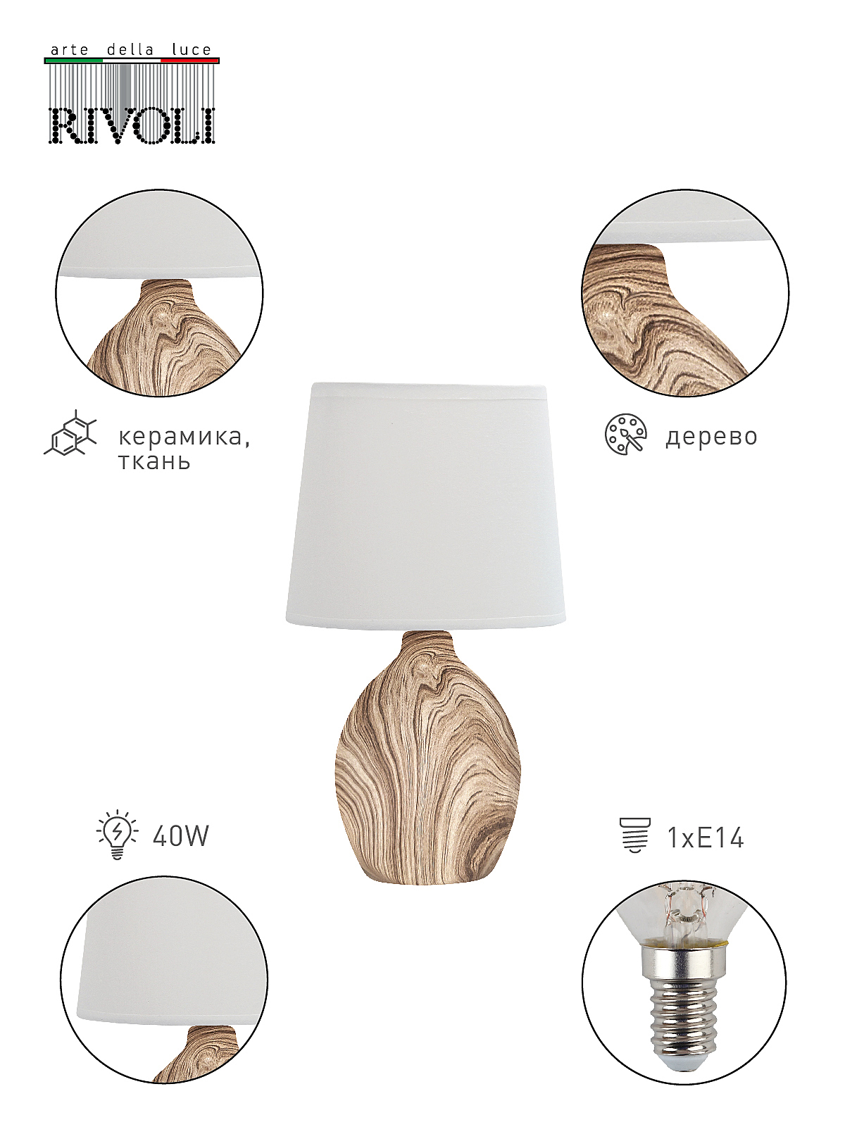Допускается отличие страны-изготовителя, указанной в характеристиках. Линии производства могут находиться в нескольких государствах. Это не влияет на качество изготовления товара: все заводы данного бренда работают по общим стандартам, а готовые изделия проходят соответствующий контроль.Италия Коллекция Chimera ЦветЦвет арматуры Светлое дерево Цвет Дерево Материал арматуры Керамика Цвет плафона Белый Материал плафона Ткань РазмерыВысота (мм) 350 Длина (мм) 200 Ширина (мм) 200 ЭлектрикаКоличество ламп (шт) 1 Цоколь E14 Мощность лампы (Вт) 40 Напряжение (В) 220 Площадь освещения 3 Дополнительная информацияСтепень защиты (IP) IP20 Тип выключателя Выключатель на шнуре Вес (Кг) 0,86 -