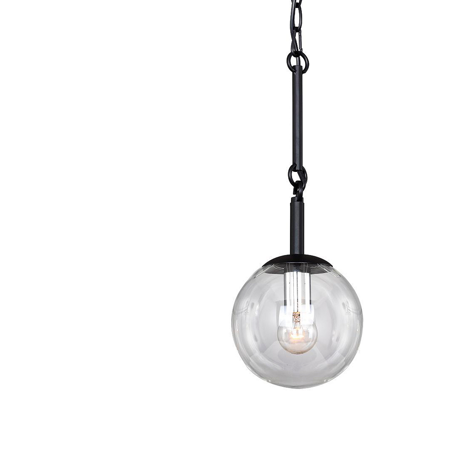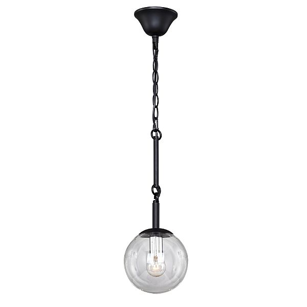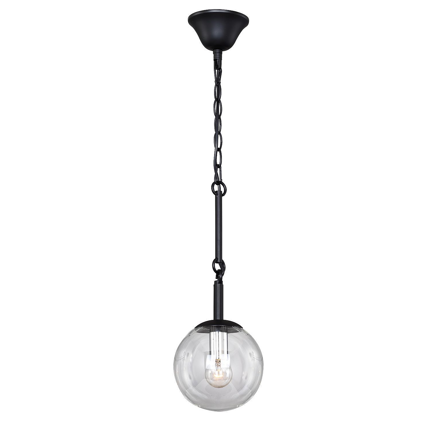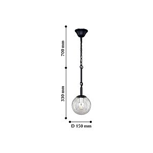 Каркас окрашен в черный цвет и оформлен прозрачными стеклянными выдувными плафонами в виде шара.