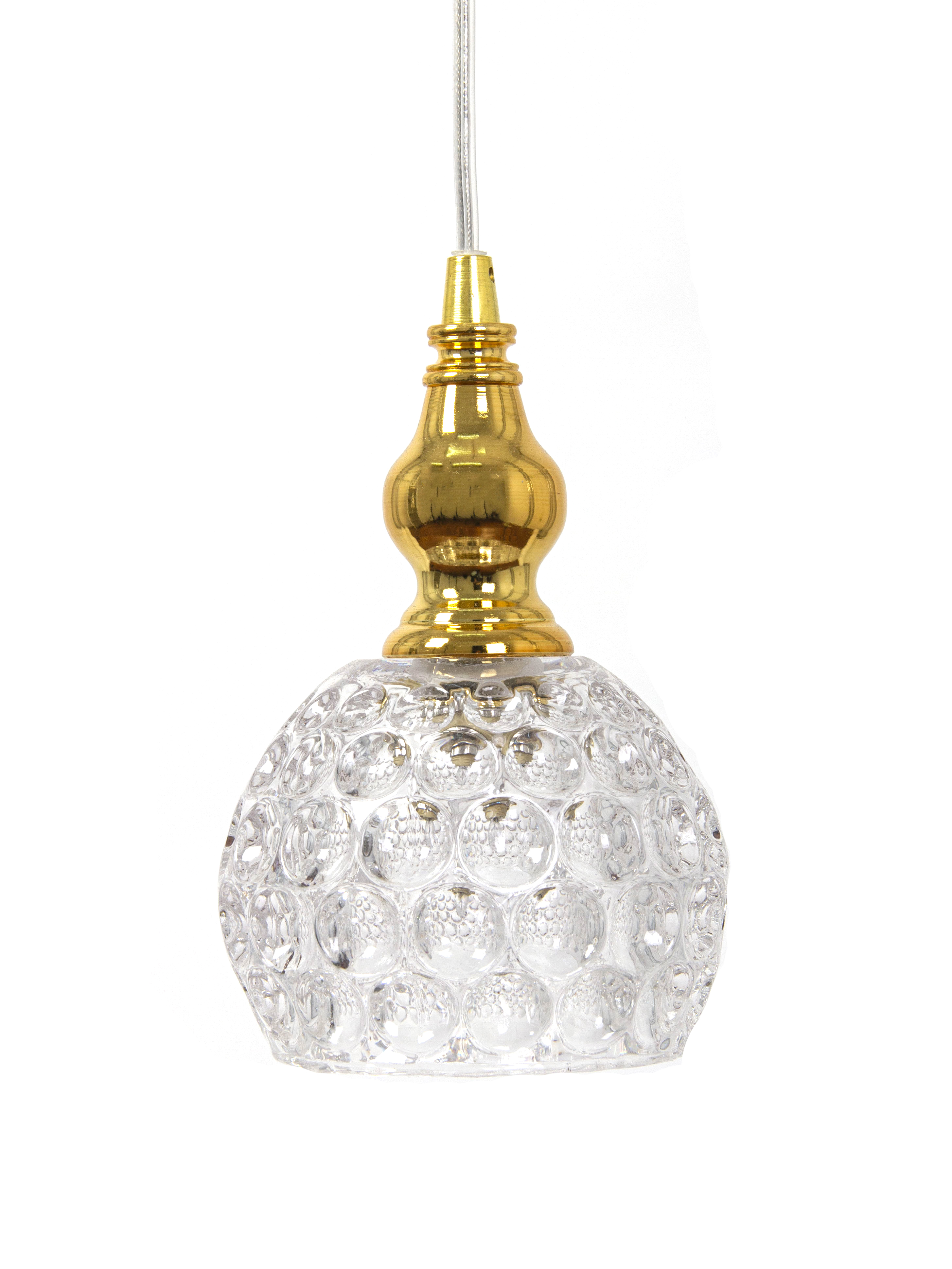 Допускается отличие страны-изготовителя, указанной в характеристиках. Линии производства могут находиться в нескольких государствах. Это не влияет на качество изготовления товара: все заводы данного бренда работают по общим стандартам, а готовые изделия проходят соответствующий контроль.Германия ЦветЦвет арматуры Золото Цвет Золото Материал арматуры Металл Цвет плафона прозрачный Материал плафона Стекло РазмерыВысота (мм) 230 Диаметр (мм) 100 Ширина (мм) 100 ЭлектрикаКоличество ламп (шт) 1 Цоколь G9 Тип лампы Светодиодная, Накаливания Мощность лампы (Вт) 40 Напряжение (В) 220 Площадь освещения 4 Дополнительная информацияСпособ крепления Планка Степень защиты (IP) IP20 Место установки на потолок Тип подвеса На тросах Количество подвесов Одиночный подвес -