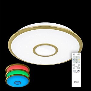Допускается отличие страны-изготовителя, указанной в характеристиках. Линии производства могут находиться в нескольких государствах. Это не влияет на качество изготовления товара: все заводы данного бренда работают по общим стандартам, а готовые изделия проходят соответствующий контроль.Дания Коллекция Старлайт ЦветЦвет арматуры Белый Цвет Золото Материал арматуры Оптический полимер Цвет плафона Белый, золото Материал плафона Оптический полимер РазмерыВысота (мм) 70 Диаметр (мм) 420 Ширина (мм) 420 ЭлектрикаКоличество ламп (шт) 1 Цоколь LED Тип лампы Светодиодная Мощность лампы (Вт) 30 Общая мощность (Вт) 30 Световой поток 2100 Цветовая температура RGB, 3000-4500 Площадь освещения 11 Дополнительная информацияСпособ крепления На основание Степень защиты (IP) IP44 Вес (Кг) 1,5 Диммирование Да Техническая оссобеность Ночной режим, Регулировка яркости, Полностью светодиодная, Регулировка цветовой температуры, RGB Тип управления Пульт ДУ -