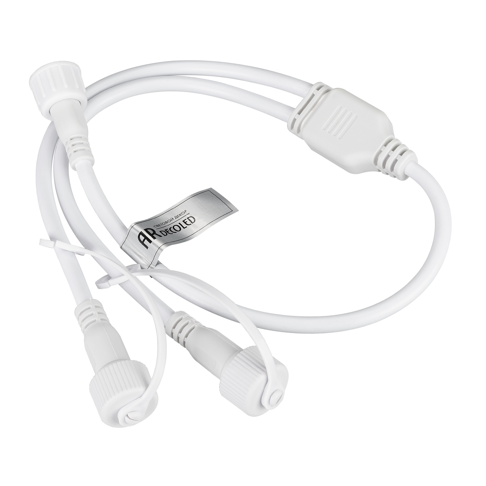 PLC сплиттер (коннектор питания) для подключения гирлянд серии RGB-SYNC. Материал оболочки - белый ПВХ. Входное напряжение DC 230V. Вход: питание+сигнал. Выход: питание+сигнал. Выходной порт - 2 шт. Поддерживает управление до 3000 RGB светодиодов, каждый порт до 1500 светодиодов.