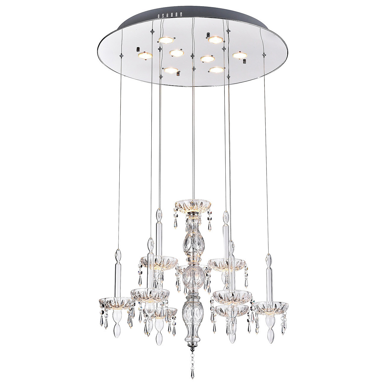 Допускается отличие страны-изготовителя, указанной в характеристиках. Линии производства могут находиться в нескольких государствах. Это не влияет на качество изготовления товара: все заводы данного бренда работают по общим стандартам, а готовые изделия проходят соответствующий контроль.Великобритания Коллекция Celine ЦветЦвет арматуры Хром Цвет Хром Материал арматуры Металл Материал декора Хрусталь РазмерыВысота (мм) 1500 Длина (мм) 650 Ширина (мм) 650 ЭлектрикаКоличество ламп (шт) 8 Цоколь GU4 Мощность лампы (Вт) 35 Напряжение (В) 220 Площадь освещения 15 Дополнительная информацияСтепень защиты (IP) IP20 Вес (Кг) 8.08 Тип подвеса На тросах -