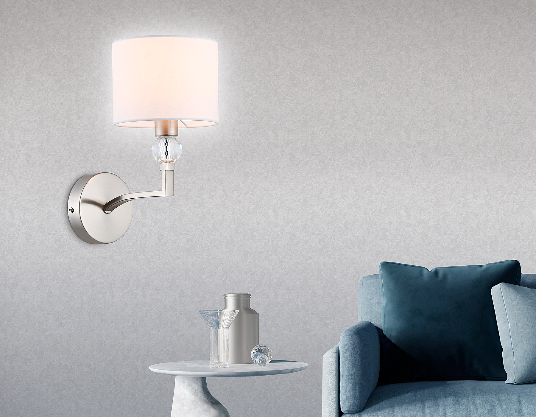 Настенный светильник с абажуром из коллекции HIGH LIGHT. Модель LH71125 представлена в классическом стиле. Светильник выполнен из тканевого плафона белого цвета и декорирован превосходным прозрачным хрусталем, каркас изготовлен из металла цвета никель. Для данной модели подойдут лампы с цоколем Е14. Светильник будет прекрасным дополнением в любом помещении.
