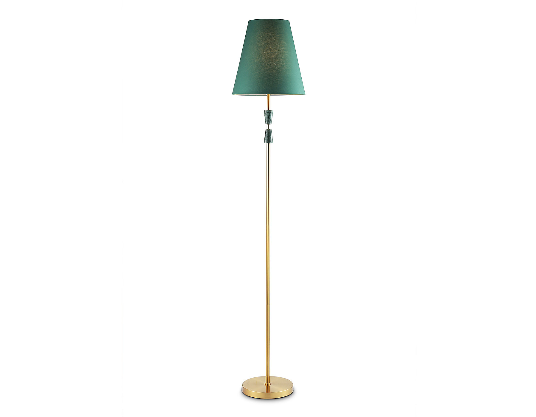 Напольный светильник из коллекции HIGH LIGHT. Модель LH75059 представлена в стиле неоклассика. Светильник выполнен из металлического каркаса цвета латунь, зеленого тканевого плафона, а также декорирован зеленым мрамором. Для данной модели подойдет сменная лампа с цоколем Е27. Светильник будет прекрасным дополнением в любом помещении.