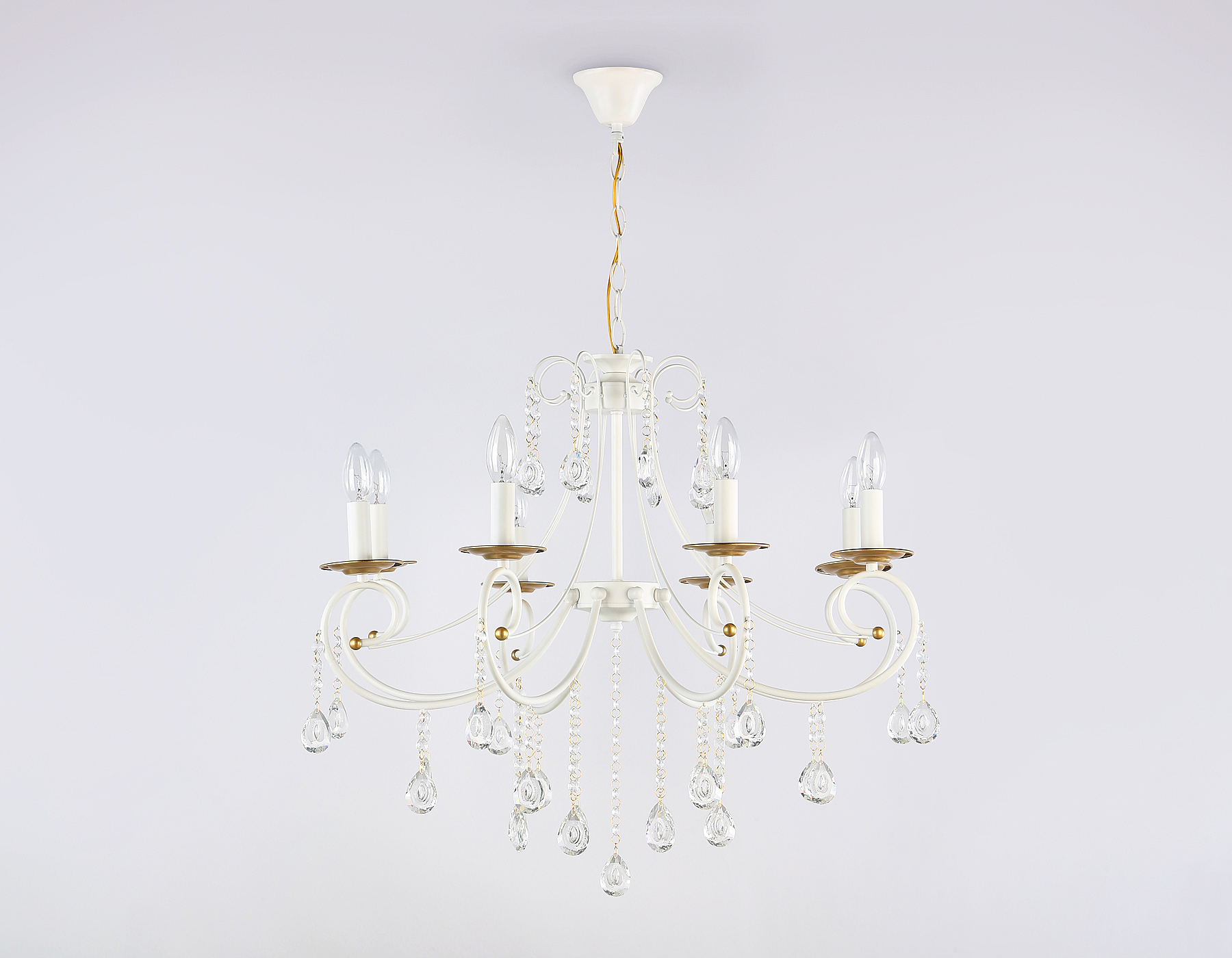 Допускается отличие страны-изготовителя, указанной в характеристиках. Линии производства могут находиться в нескольких государствах. Это не влияет на качество изготовления товара: все заводы данного бренда работают по общим стандартам, а готовые изделия проходят соответствующий контроль.Россия Коллекция CLASSIC ЦветЦвет арматуры Золото, Белый Цвет Белый Материал арматуры Металл Цвет декора прозрачный Материал декора Хрусталь РазмерыВысота (мм) 930 Диаметр (мм) 740 Высота минимальная (мм) 540 Ширина (мм) 740 ЭлектрикаКоличество ламп (шт) 8 Цоколь E14 Мощность лампы (Вт) 40 Напряжение (В) 220 Площадь освещения 18-30 Дополнительная информацияСпособ крепления Крюк Степень защиты (IP) IP20 Тип подвеса На цепи -