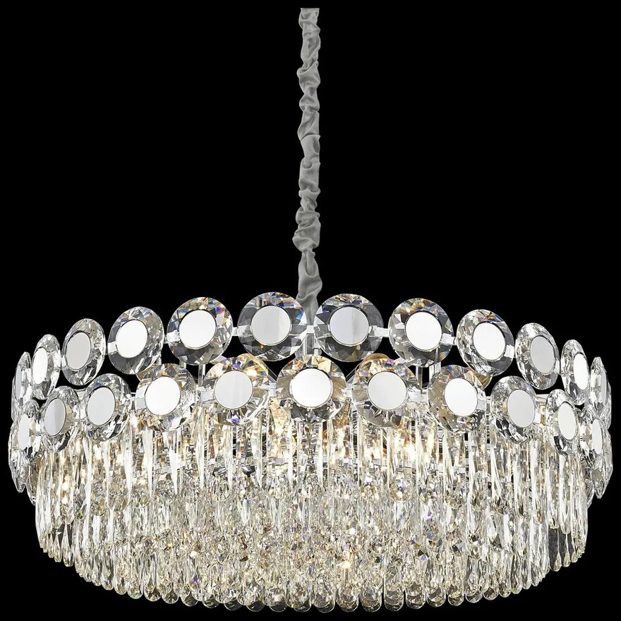Допускается отличие страны-изготовителя, указанной в характеристиках. Линии производства могут находиться в нескольких государствах. Это не влияет на качество изготовления товара: все заводы данного бренда работают по общим стандартам, а готовые изделия проходят соответствующий контроль.Италия Коллекция Claudia ЦветЦвет арматуры Хром Цвет Хром Материал арматуры Металл Цвет плафона прозрачный Материал плафона Хрусталь РазмерыВысота (мм) 260 Длина (мм) 780 Диаметр (мм) 780 Высота минимальная (мм) 260 Ширина (мм) 780 ЭлектрикаКоличество ламп (шт) 25 Цоколь E14 Лампочки в комплекте Нет в комплекте Мощность лампы (Вт) 40 Напряжение (В) 220 Площадь освещения 50 Дополнительная информацияСпособ крепления Планка Степень защиты (IP) IP20 Тип подвеса На цепи -